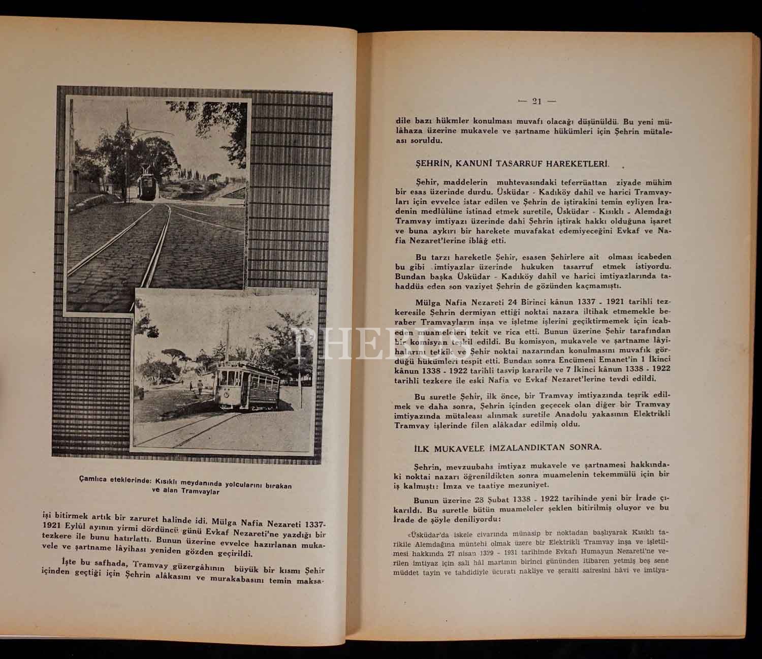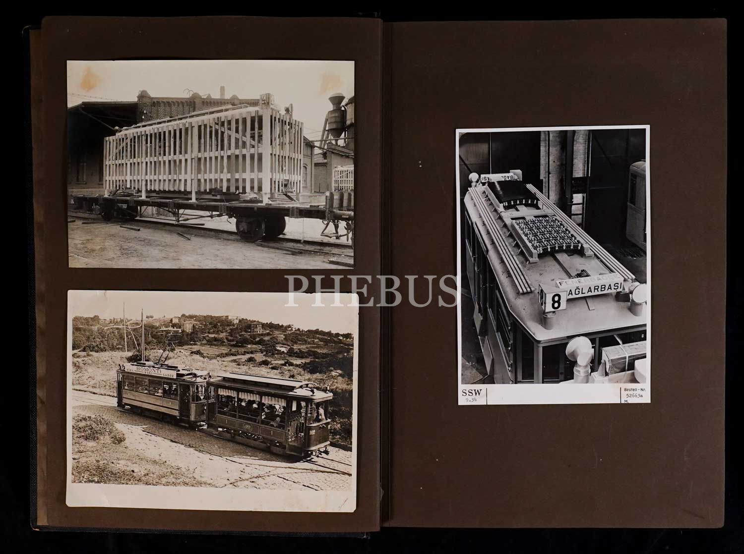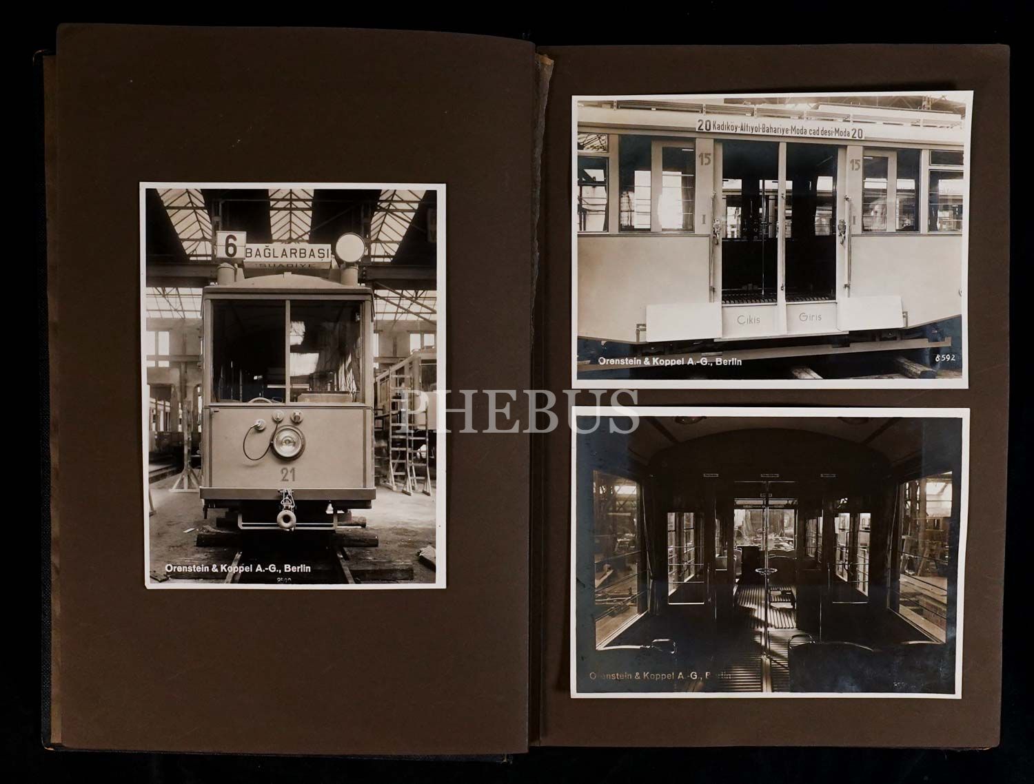 Üsküdar-Kadıköy tramvay hattında işleyecek tramvayların Berlin Orenstein & Koppel fabrikasındaki imalini, Türk heyetinin fabrikayı ziyaretini ve Üsküdar civarında sefere çıkan ilk tramvayları belgeleyen emsalsiz bir fotoğraf albümü ile hattın tarihine ışık tutan "Üsküdar-Kadıköy ve Havalisi Halk Tramvayları" kitabı; albüm 32x43 cm, kitap 20x27 cm...