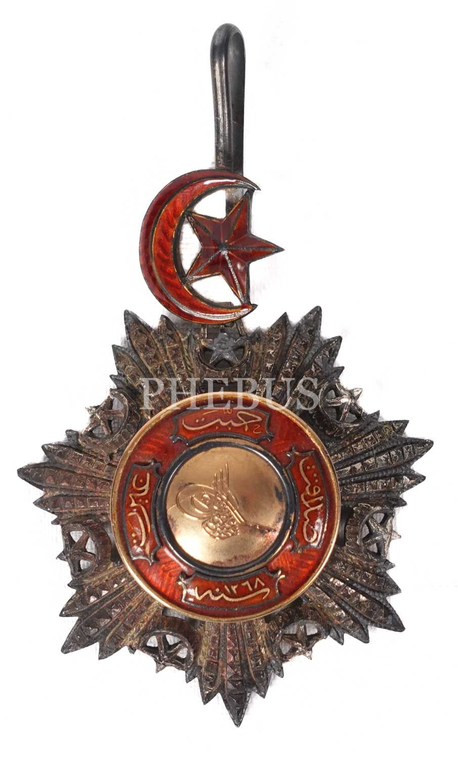 29 Ağustos 1852´den 1922 yılına kadar ilmiye ve askeriye mensuplarından üstün hizmet ve muvaffakıyet gösterenlere verilen Mecidi Nişanı, beş rütbeden oluşmaktaydı. Nişanın merkezinde, kırmızı mine üzerine altın yaldızlı "Gayret, Hamiyyet, Sadakat” kelimeleri; altındaysa, 1268 (1851) tarihi yazılıdır. Müzayedemizde sunduğumuz üçüncü rütbe Mecidi Nişanı, kayıtlara göre 800 adet basılmıştır.
