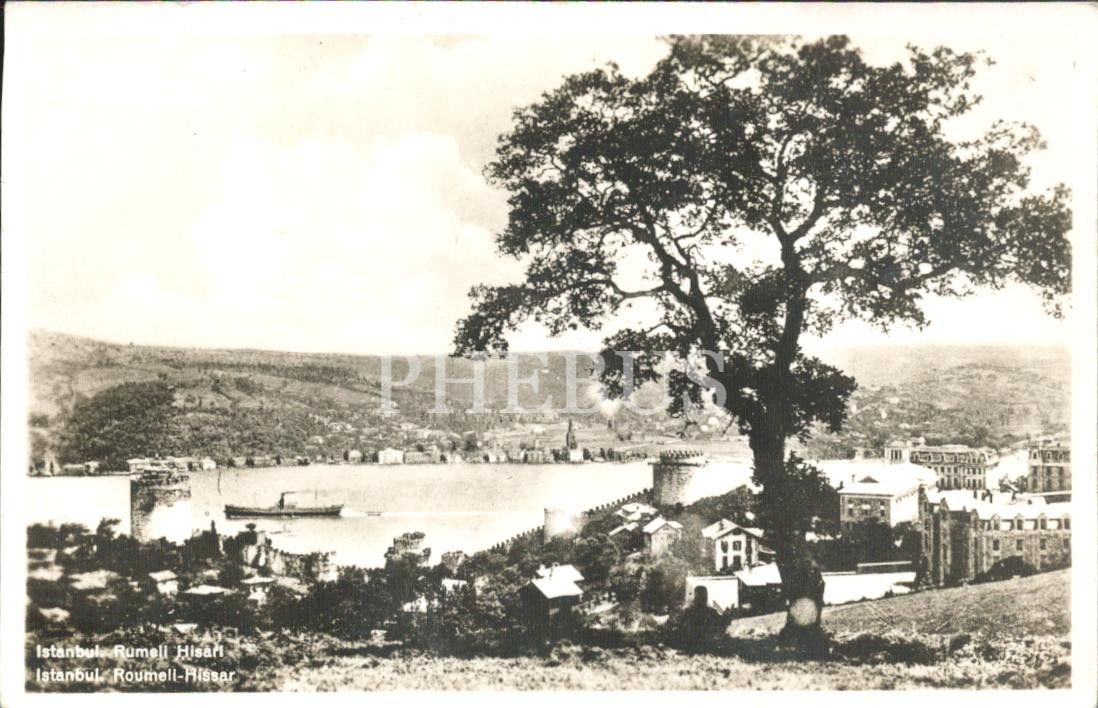 Rumeli Hisarı ve boğaz manzarası, "İstanbul Rumeli Hisarı, İstanbul Roumeli-Hissar", pullu ve postadan geçmiş, İstanbul, 14x9 cm...