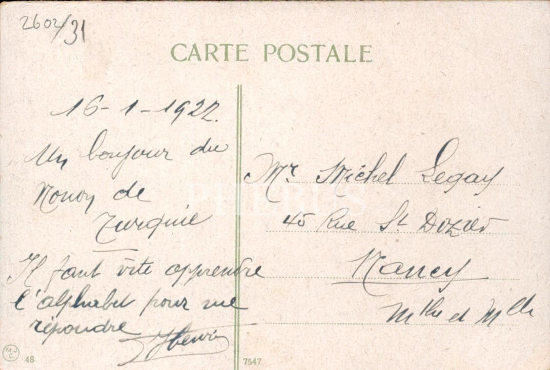 Arka yüzünde, Fransızca mektup yer almaktadır.
