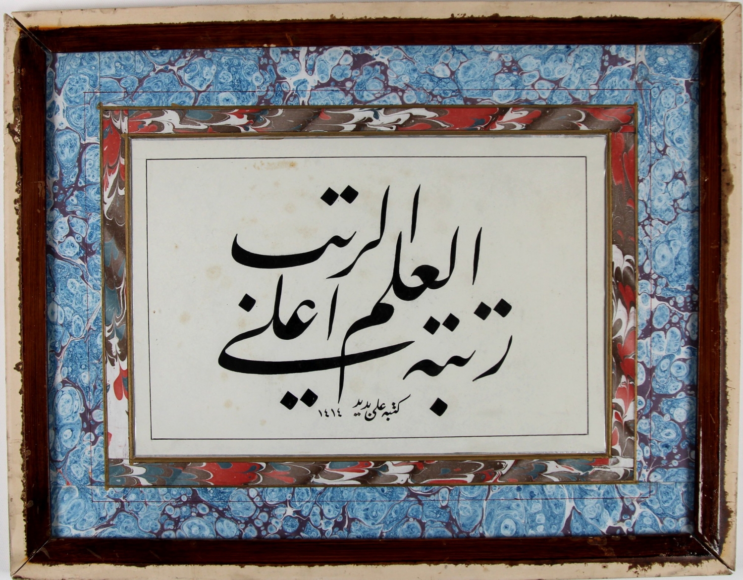Celi Talik levha, "Rütbetü'l ilmi aler-rutebi (ilim rütbelerin en yücesidir)" ketebe Ali Bedir, 35x26,5 cm.
