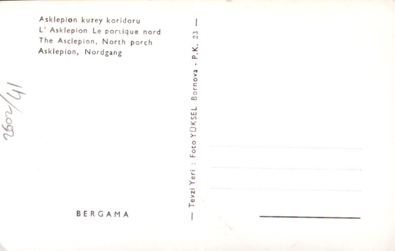 Bergama, Asklepion kuzey koridoru, İzmir, 14x9 cm...