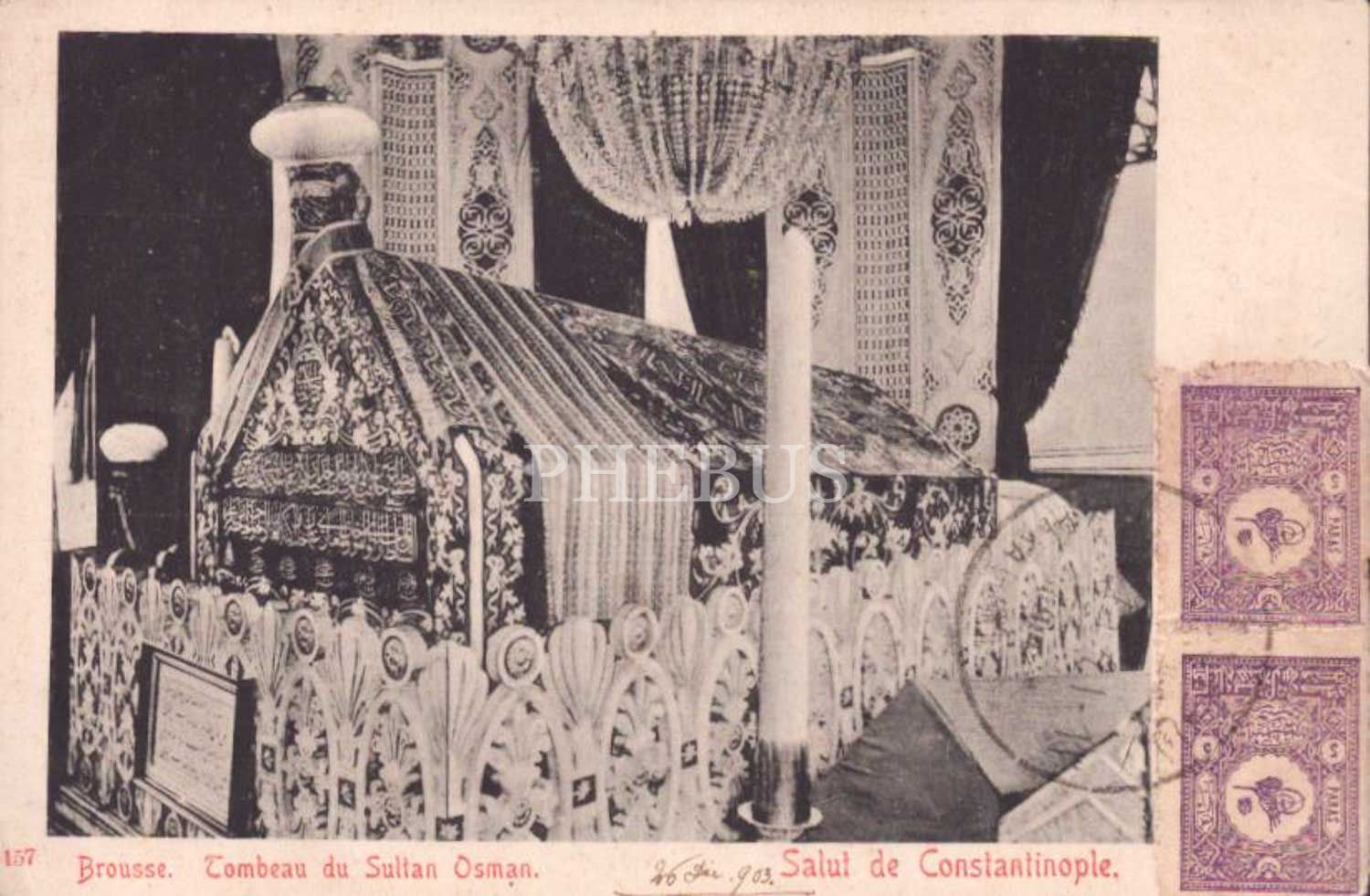 Osman Gazi Türbesi, "Brousse, Tombeau du Sultan Osman, Salut de Constantinople", pullu ve postadan geçmiş, Bursa, 14x9 cm...
