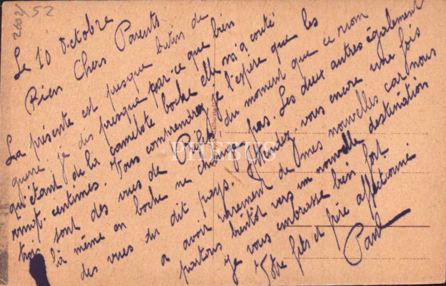 Arka yüzünde Fransızca mektup yer almaktadır.