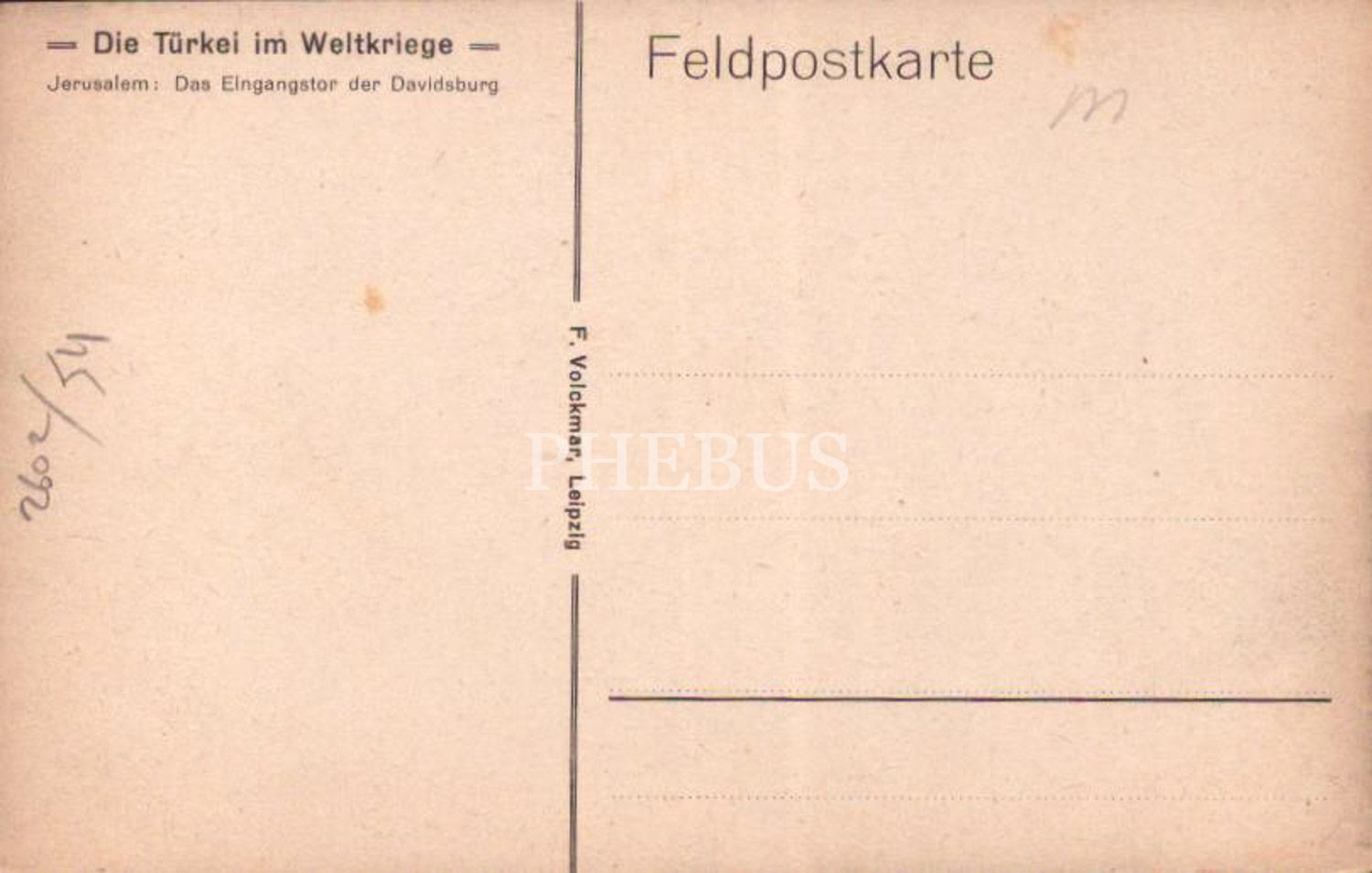 Davut Kulesi´nin giriş kapısı,"Die Türkei im Weltkriege, Jerusalem: Das Eingangstor der Davidsburg", ed.: F. Volckmar, Leipzig, Alman baskı, İsrail, 14x9 cm...