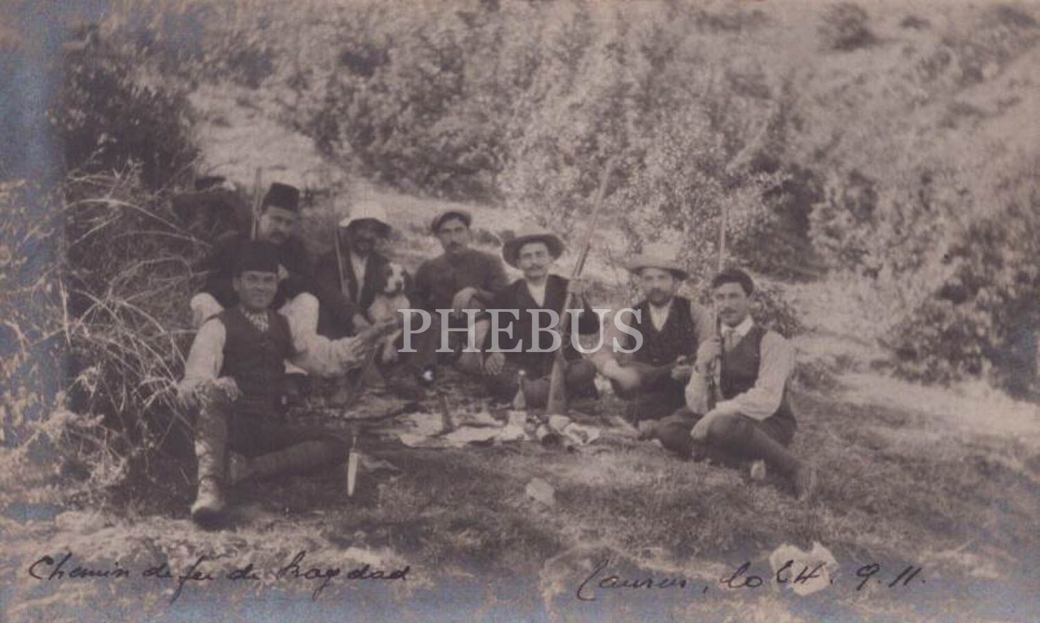 Adana- Bağdad Demiryolu yapımında güvenliği sağlayan fesli ve şapkalı silahlı ekip, "Chemin de fer du Bagdad, Taurus, 24.9.11", Adana, 14x9 cm...