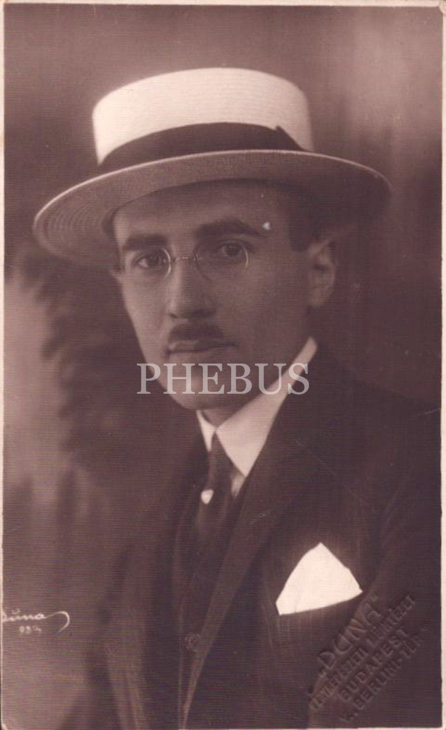 Şapkalı beyefendinin 1339 tarihli Budapeşte hatırası stüdyo fotoğrafı, Duna Budapest, 14x9 cm...