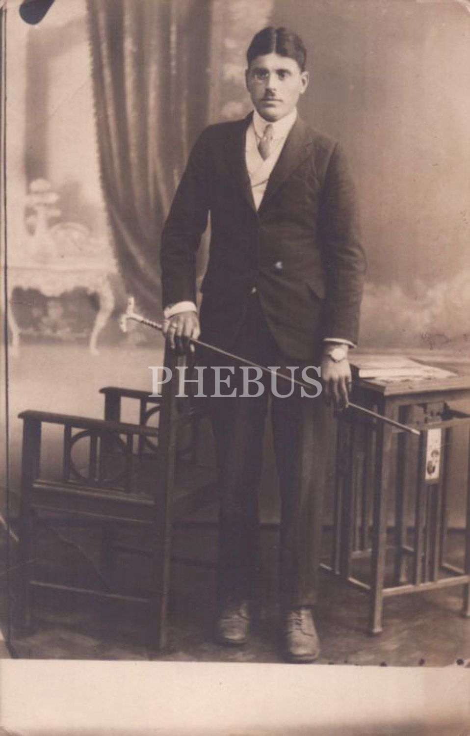 Bastonlu beyefendinin hatıra fotoğrafı, 14x9 cm...