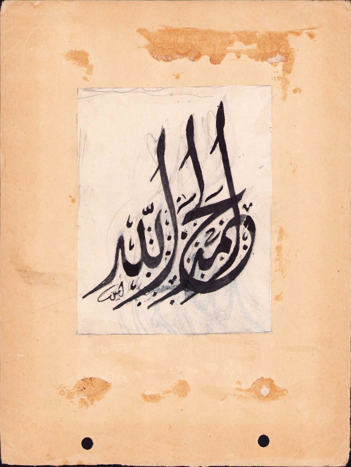 Divani yazı, "Elhamdülillah", Emin [Barın] ketebeli, 8,5x11 cm.
