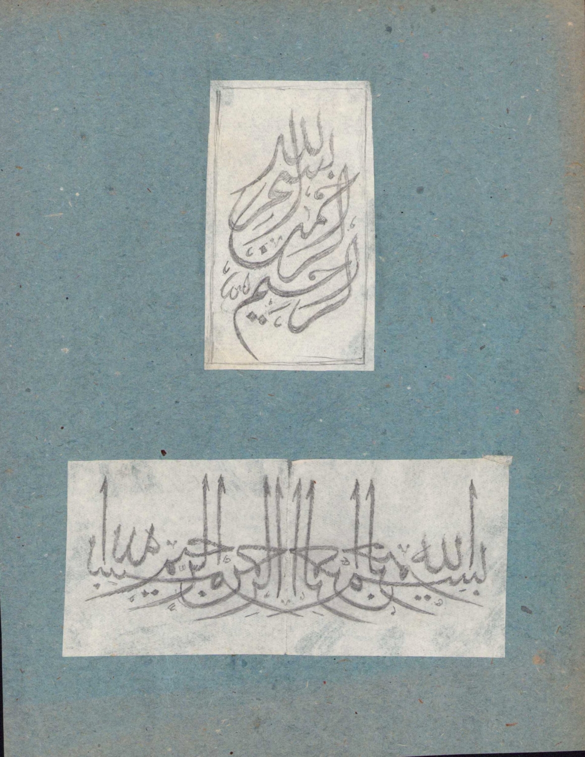 Kurşun kalemle Divani ve Muhakkak müsenna Besmele çalışmaları, Emin [Barın] ketebeli, 16,5x21 cm.