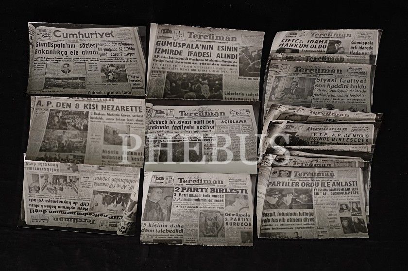 1961 senesi Tercüman gazetesinin muhtelif sayılarının manşetlerinin fotoğrafı, 24 adet, 18x12 cm...
