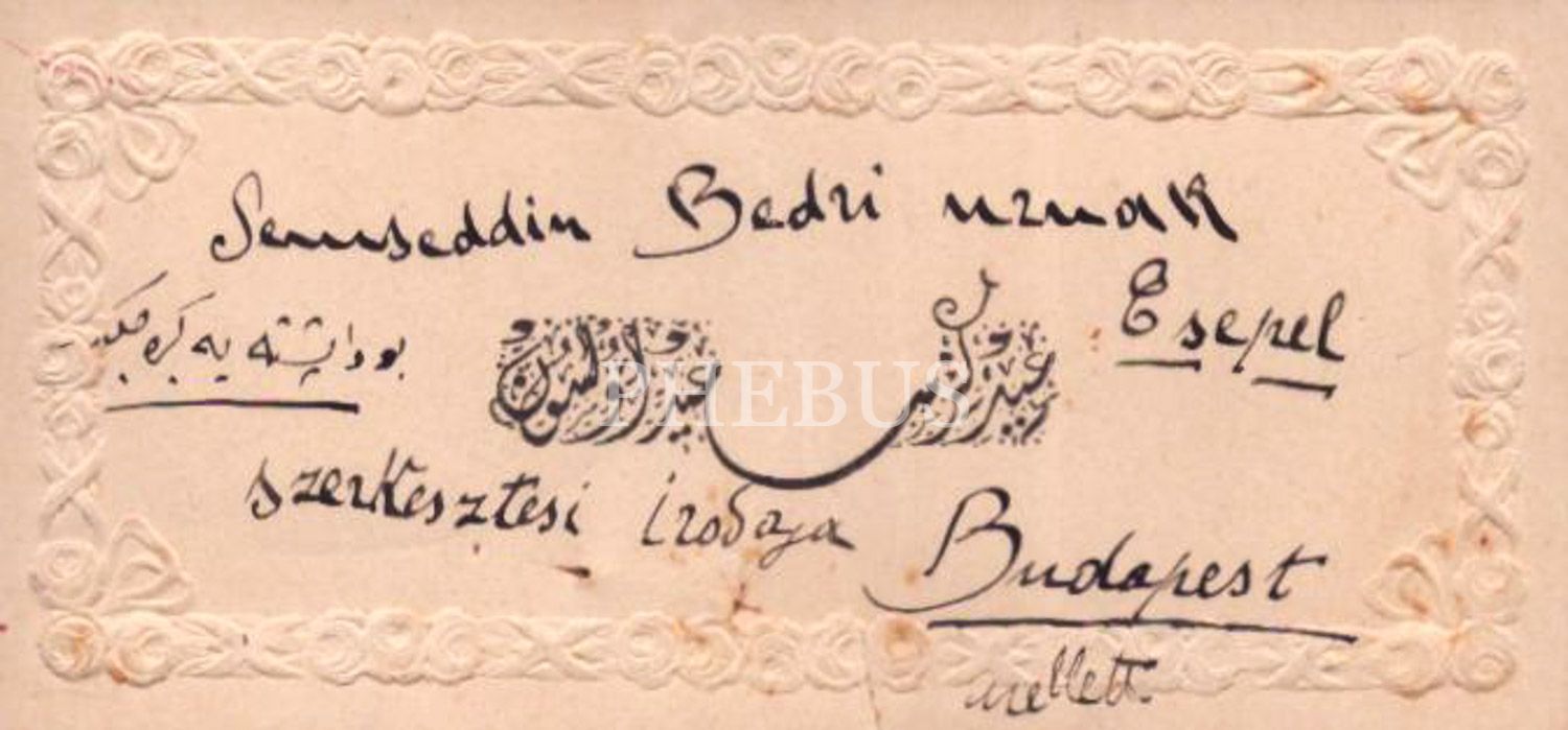 Osmanlıca ve Latin harfli Budapeşte´ye gönderilmiş bayram tebrik kartı, Osmanlıca "Iydınız said olsun" yazılı, 12x6 cm...