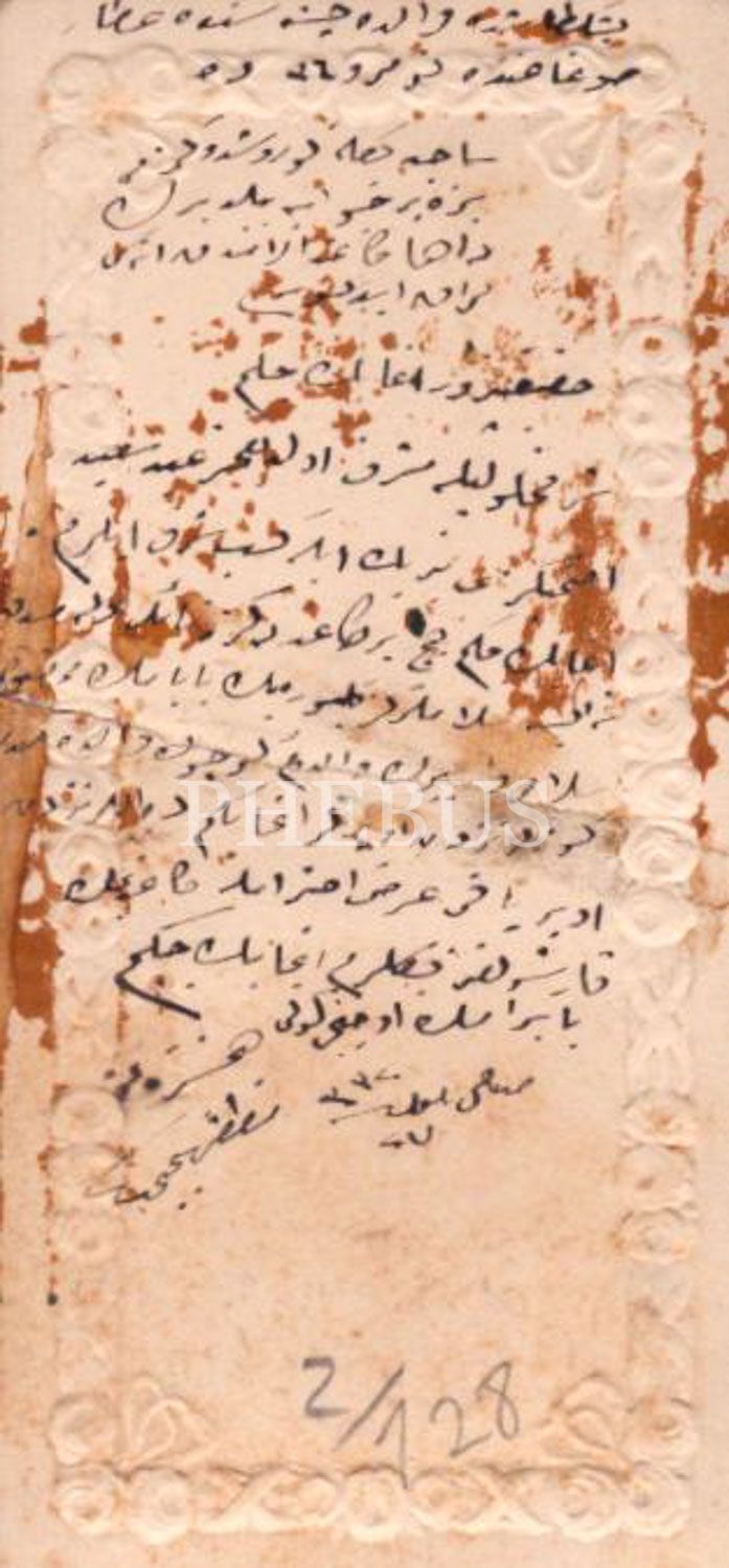 Arka yüzünde 1332 tarihli Osmanlıca mektup yer almaktadır.