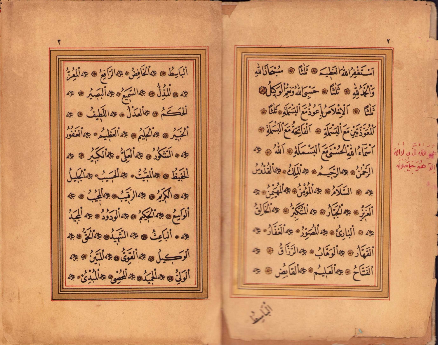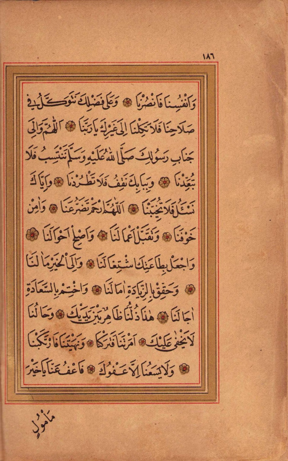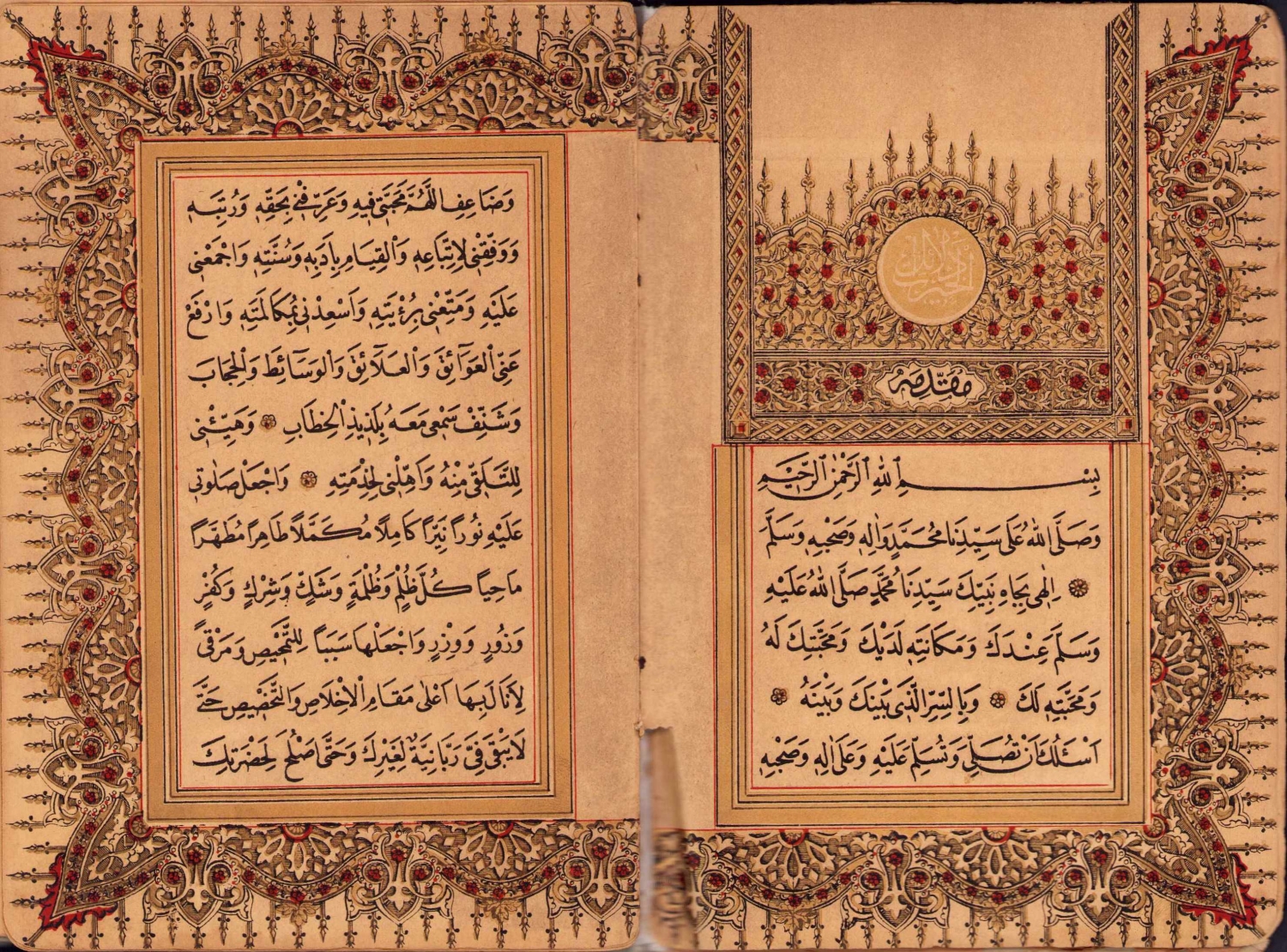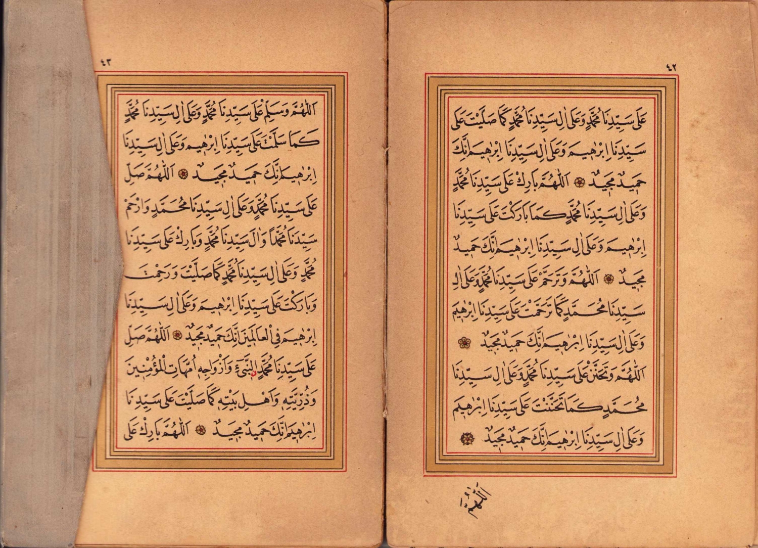 Kayışzade Hafız Osman Nuri Burduri'nin hattıyla taş baskı Delailü'l Hayrat, altın cetvelli, 12x18,5 cm.