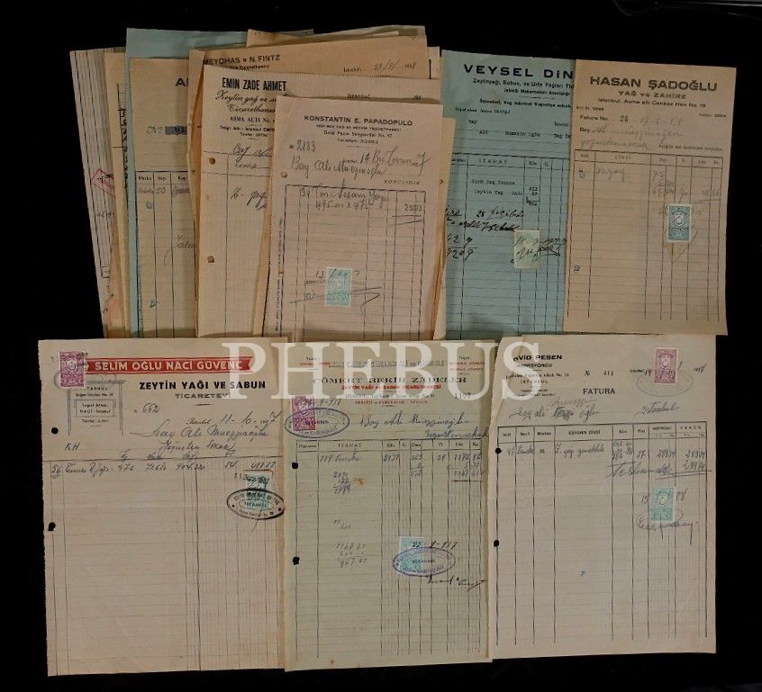 20 adet muhtelif şirketlere ait pulu ve damgalı fatura...