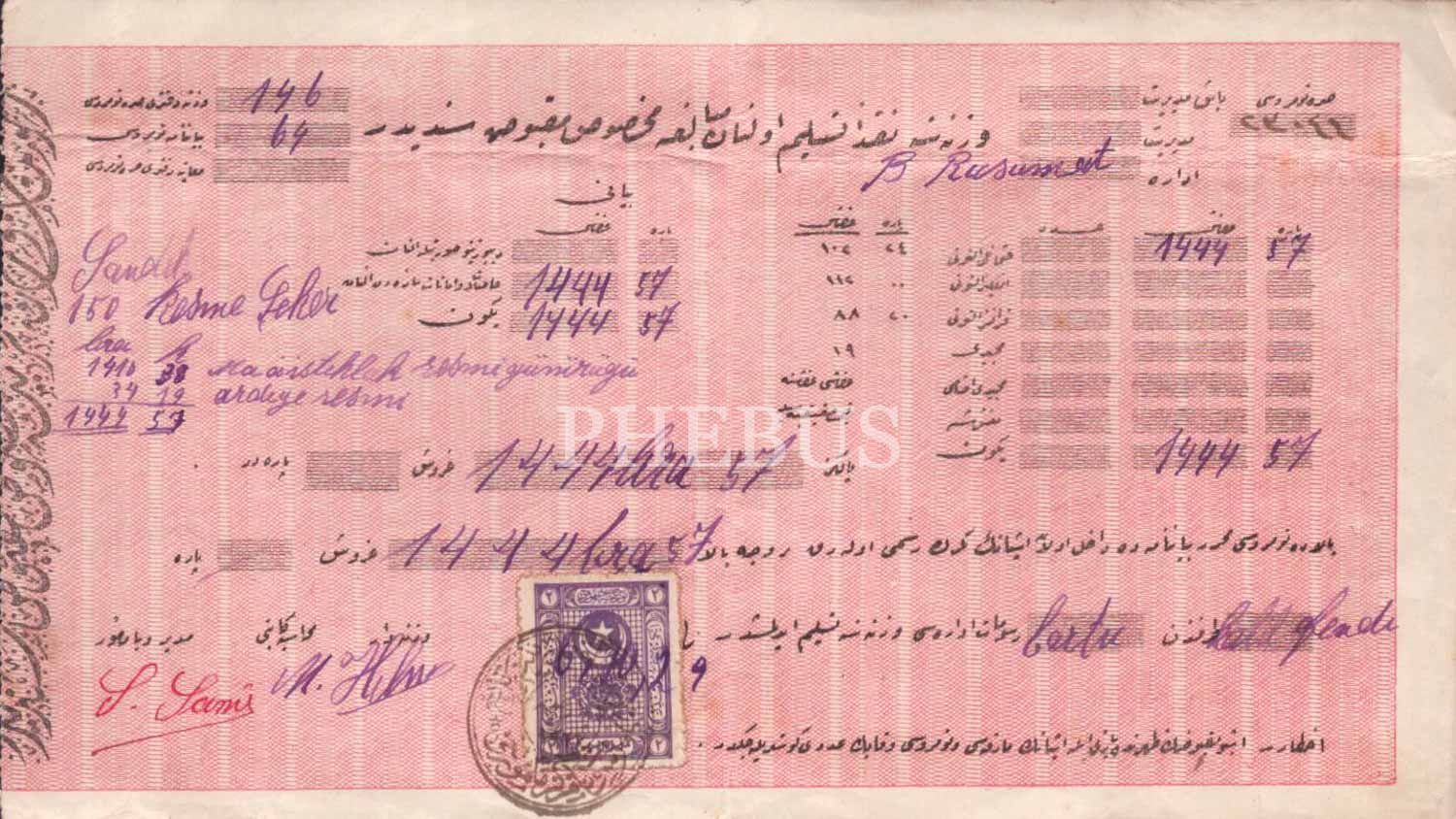 6 Kasım 1929 tarihli, B. Rusumet veznesi Osmanlıca ve Latin harfli makbuz senedi, 25x14 cm...