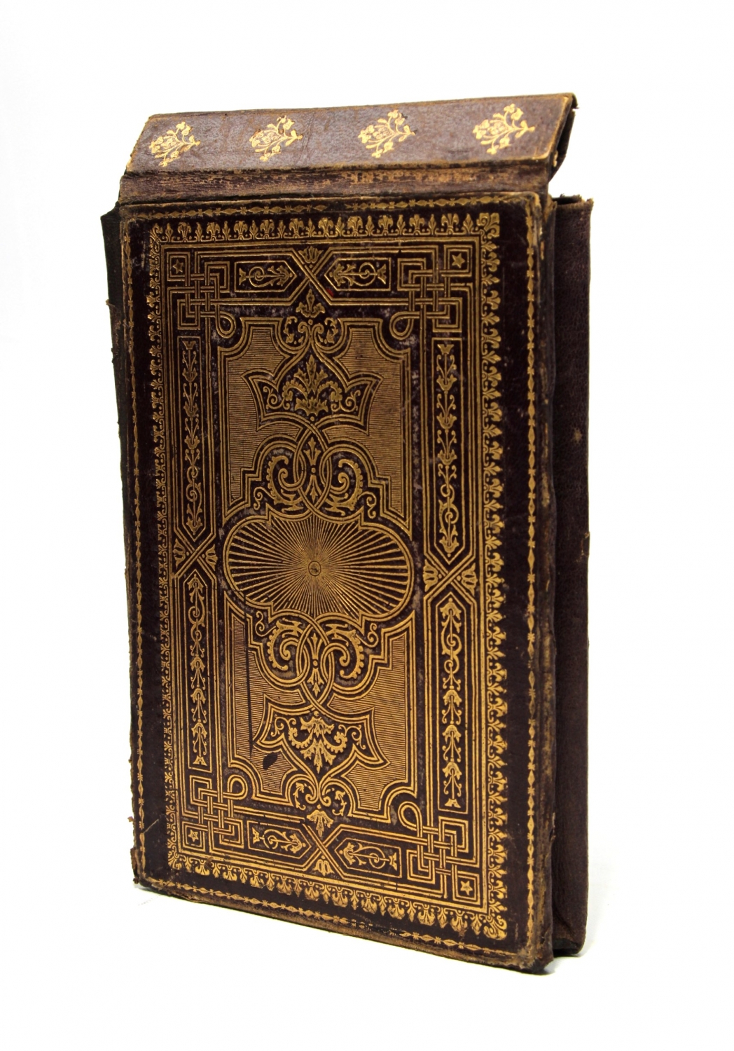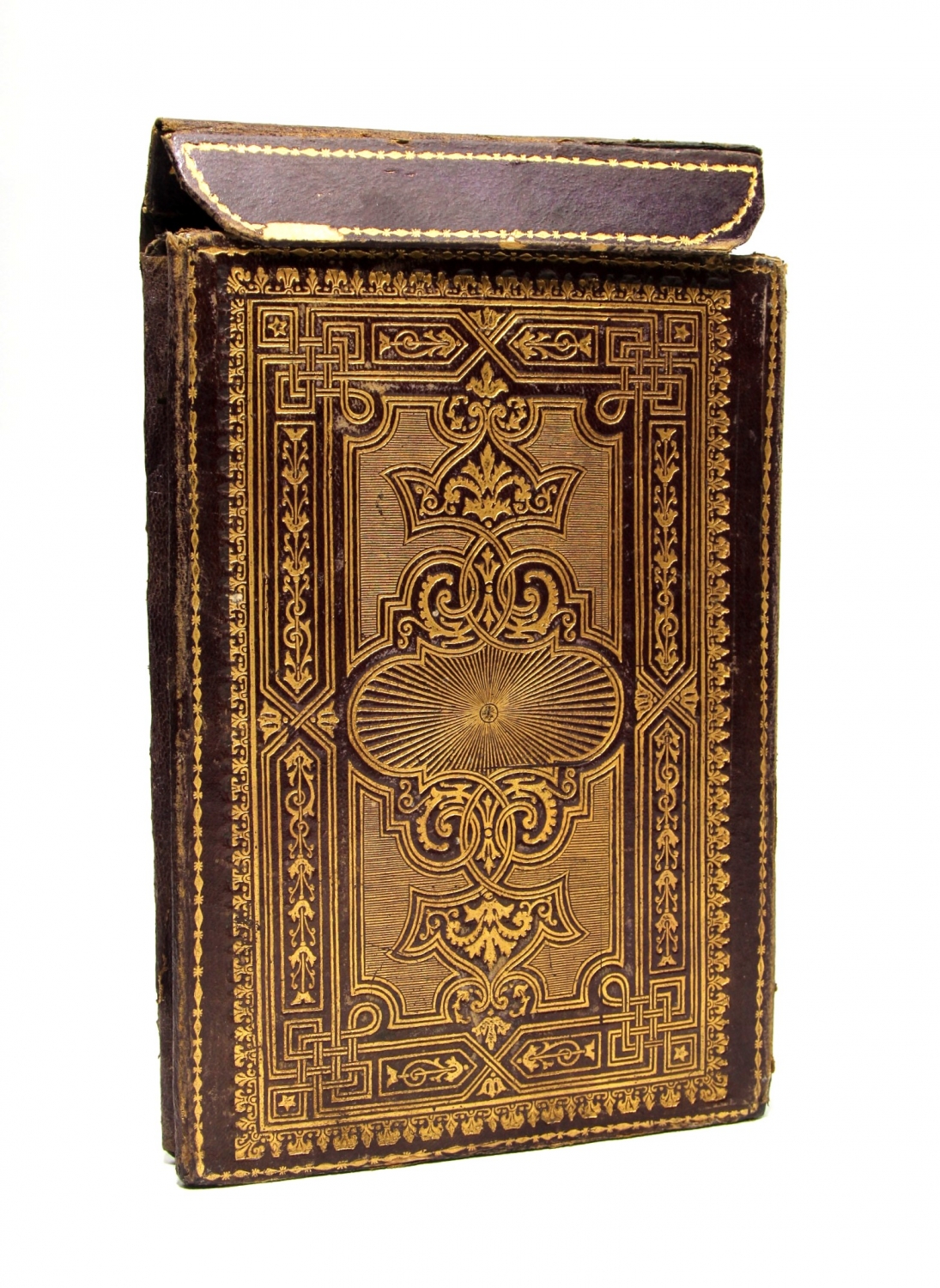 Mıklepli, süslemeli, deri kitap kılıfı, 13x19 cm.