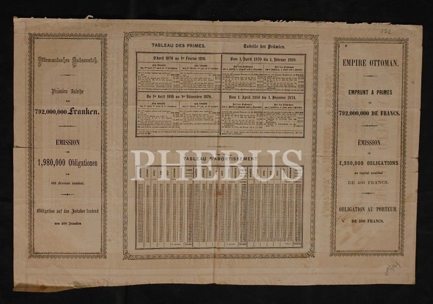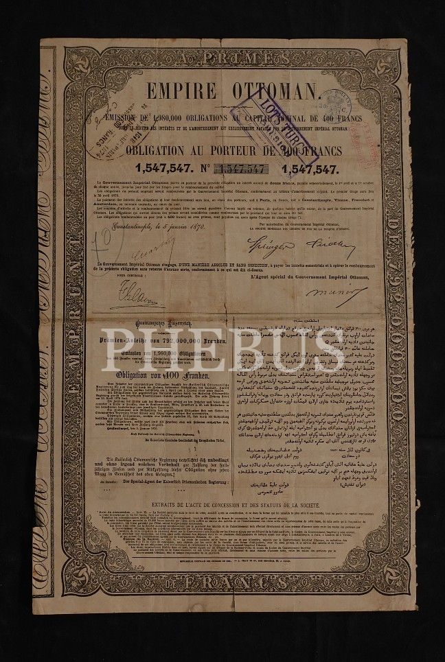 Empire Ottoman antetli hamiline ait 400 Franklık senet, 30x45 cm...