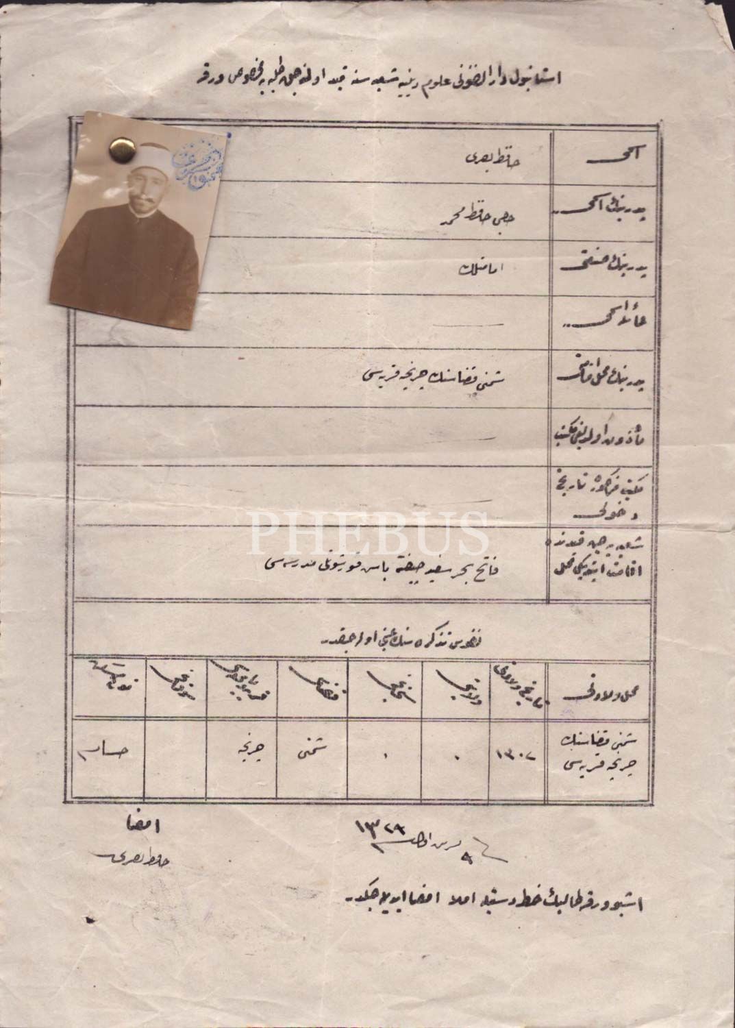 Hafız Basri Efendi´nin İstanbul Darülfünün İlm-i Şeriye Şubesi´ne Osmanlıca kayıt belgesi, 17x27 cm...