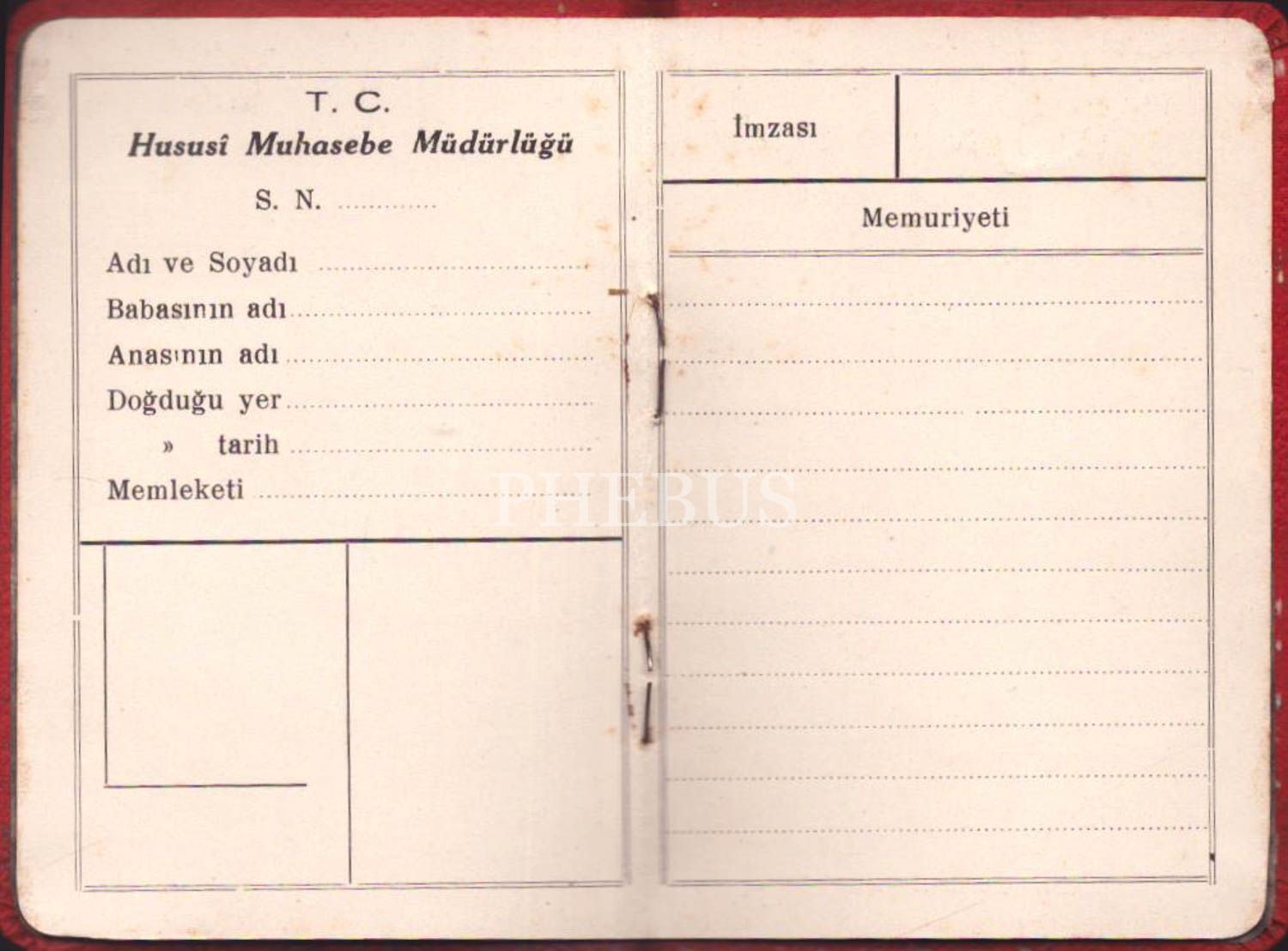Türkiye Cumhuriyeti Memurine Mahsus Hüviyet Varakası, 4 sayfa, 13x9 cm...