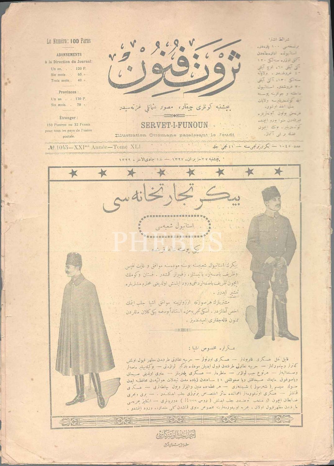 Peyker Ticarethanesi İstanbul Şubesi reklamlı kapağıyla SERVET-İ FÜNUN dergisinin 18 Cemazeyilahir 1329 tarihli 1045 numaralı sayısı, 14 sayfa, 25x36 cm...