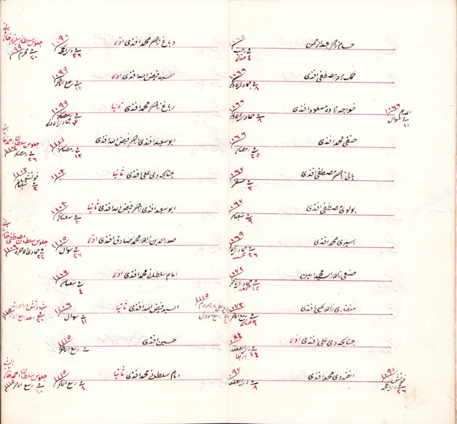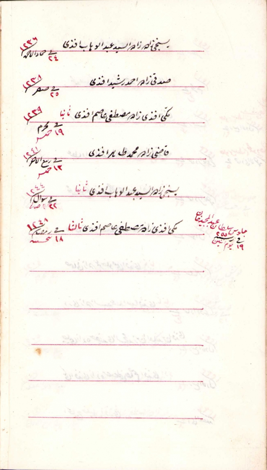 Şeyhülislam isimleri, tarihleriyle birlikte göreve getiriliş tarihleri de kayıtlıdır. Mekki Efendizade'nin üçüncü kez şeyhülislamlığa getirildiği 1248 tarihine kadardır.
