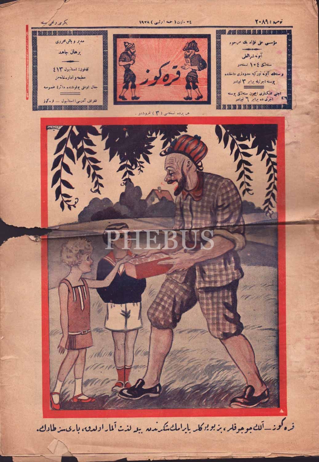 "Karagöz- Alın Çocuklar biz büyükler bayramın şekerinden bile lezzet alamıyor olduk, bari siz tadın." yazılı karikatür kapaklı KARAGÖZ dergisinin 24 Mart 1928 tarihli sayısı, 6 sayfa, 28x41 cm....