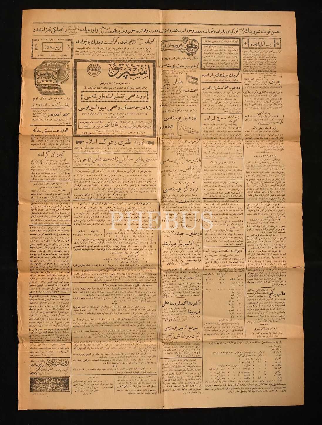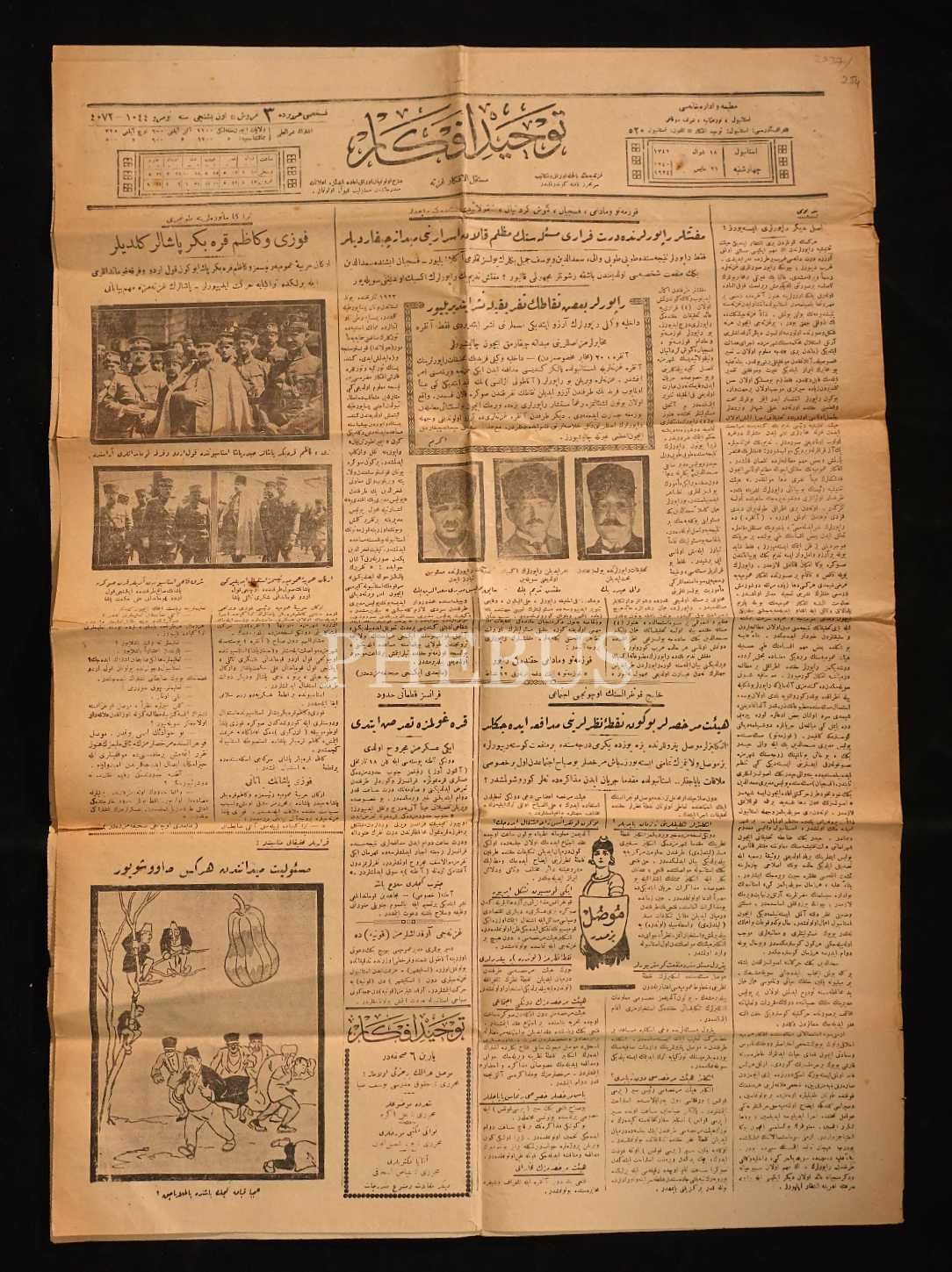 "Fevzi ve Kazım Karabekir paşalar geldiler" manşetli TEVHİD-İ EFKAR gazetesi, 18 Şevval 1342, 4 sayfa, 43x62 cm...