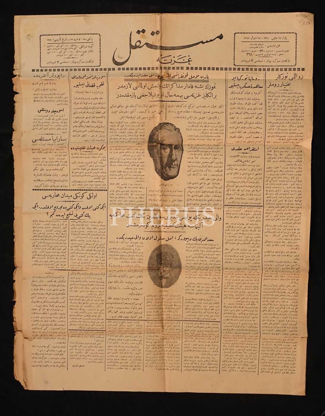 "Yarın Musul Konferansı ilk konferasını akdedecektir" manşetli MÜSTAKİL gazetesi, 15 Şevval 1342, 4 sayfa, 48x60 cm...