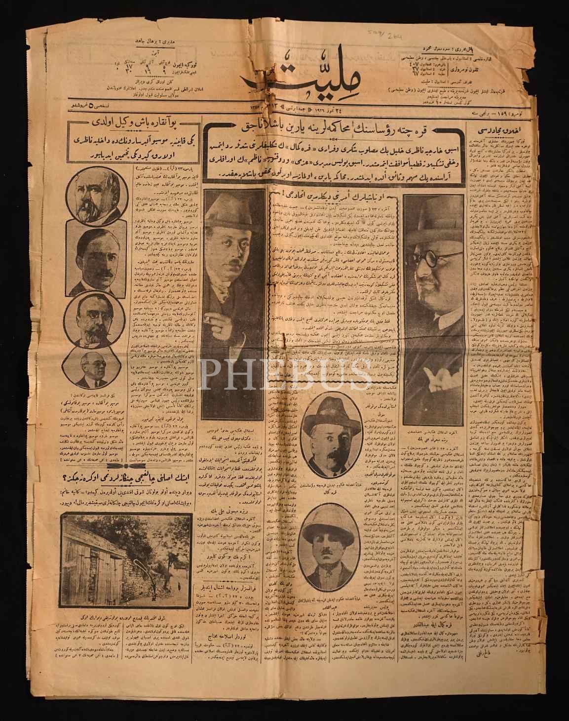 "Kara Çete reisinin mahkemelerine yarın başlanacak" manşetli İstiklal Mahkemeleri konulu MİLLİYET gazetesi, 24 Temmuz 1926, 6 sayfa, 47x60 cm...