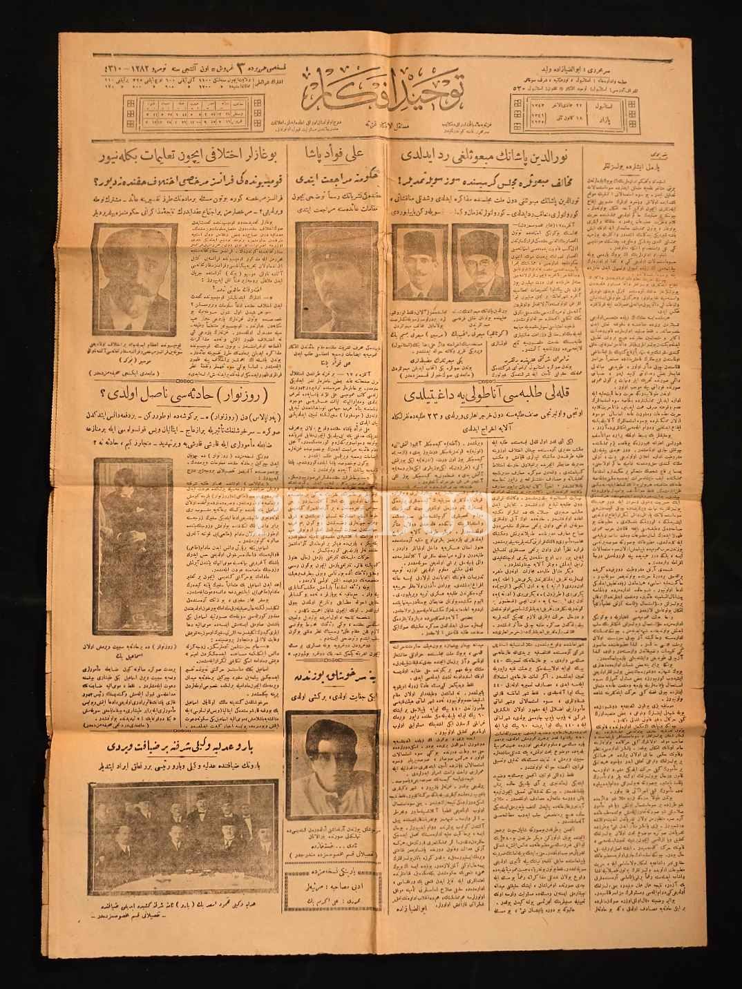 "Boğazlar İhtilafı için talimat bekleniyor" manşetli TEVHİD-İ EFKAR gazetesi, 22 Cemazeyilahir 1343, 4 sayfa, 43x60 cm...