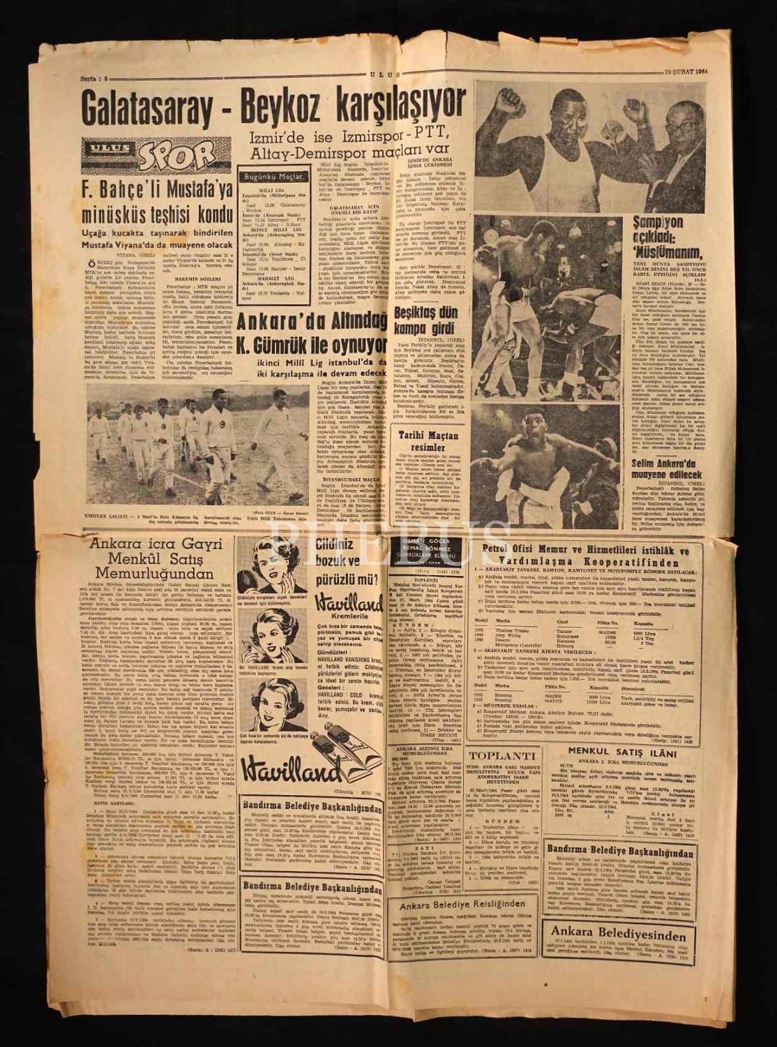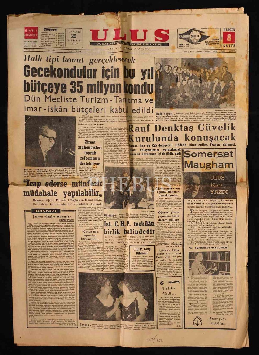 Kıbrıs gerilimine dair havadisleri ilk sayfasına taşıyan ULUS gazetesi, 29 Şubat 1964, 8 sayfa, 48x58 cm...