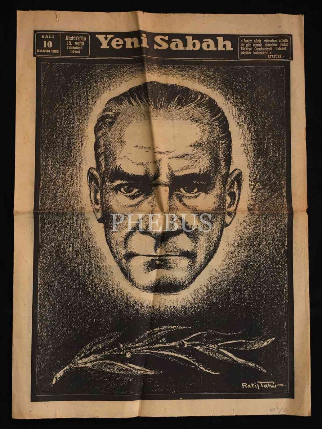 YENİ SABAH gazetesinin "Atatürk´ün 15. Vefat Yıldönümü İlâvesi", 10 Kasım 1953, 4 sayfa, 40x59 cm...
