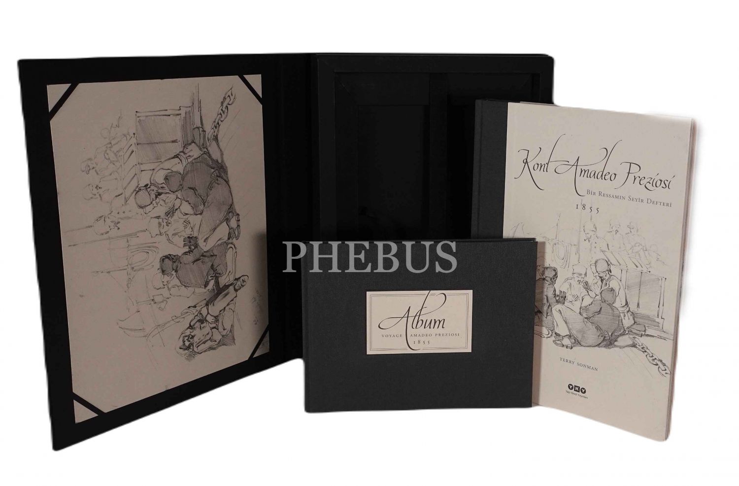 Preziosi´nin 1855 Albümü olarak adı geçen resim defterinin tıpkı basımını da ihtiva eden orijinal kutusunda KONT AMADEO PREZİOSİ (Bir Ressamın Seyir Defteri) 1855, Terry Sonman, editör: Mine Haydaroğlu, Aralık 2010, Yapı Kredi Yayınları, 142 sayfa, kitap 25x33 cm, albüm 19x25 cm...
