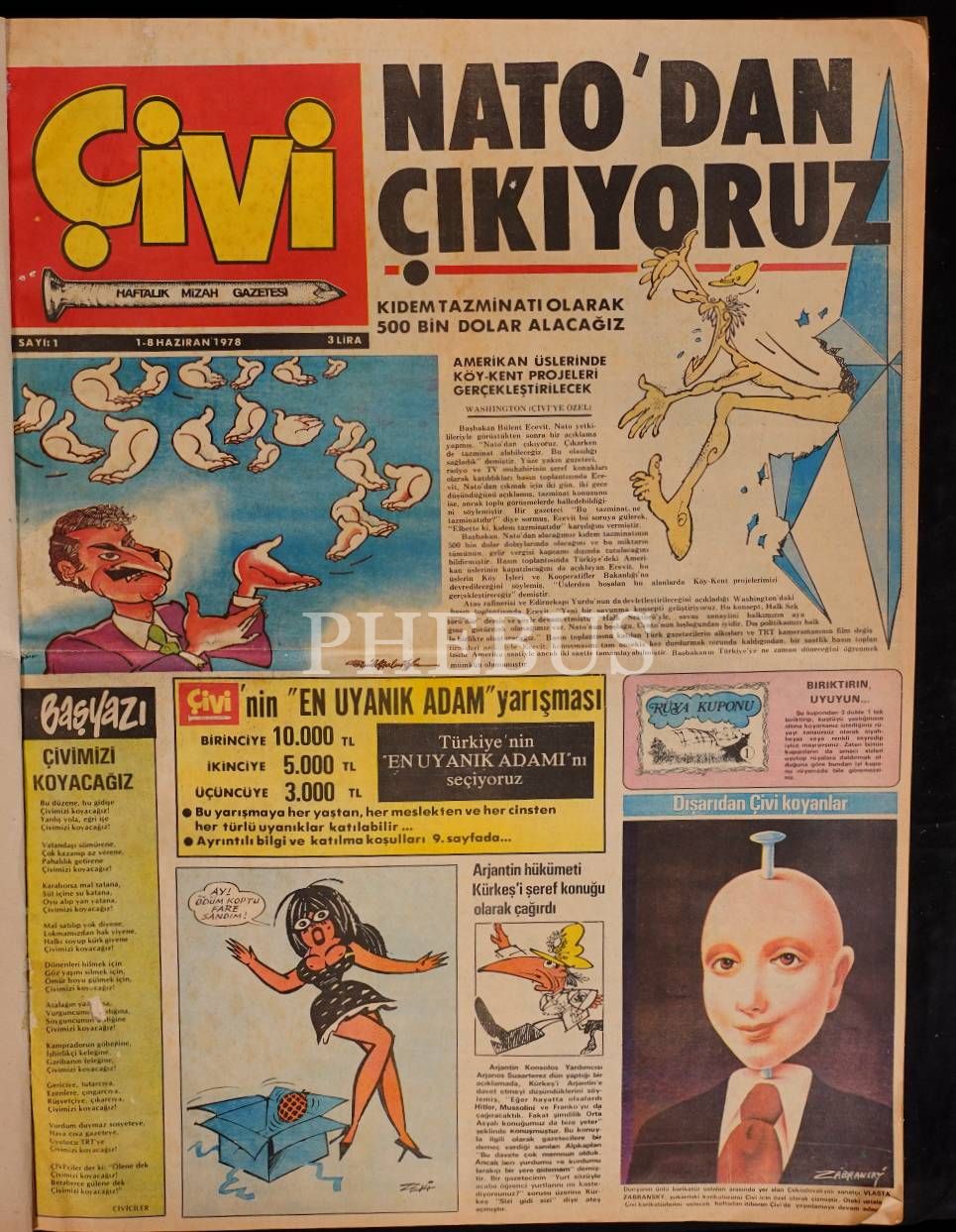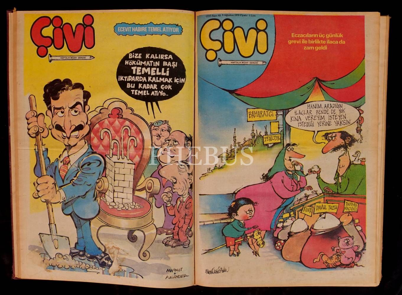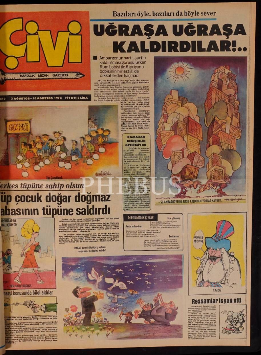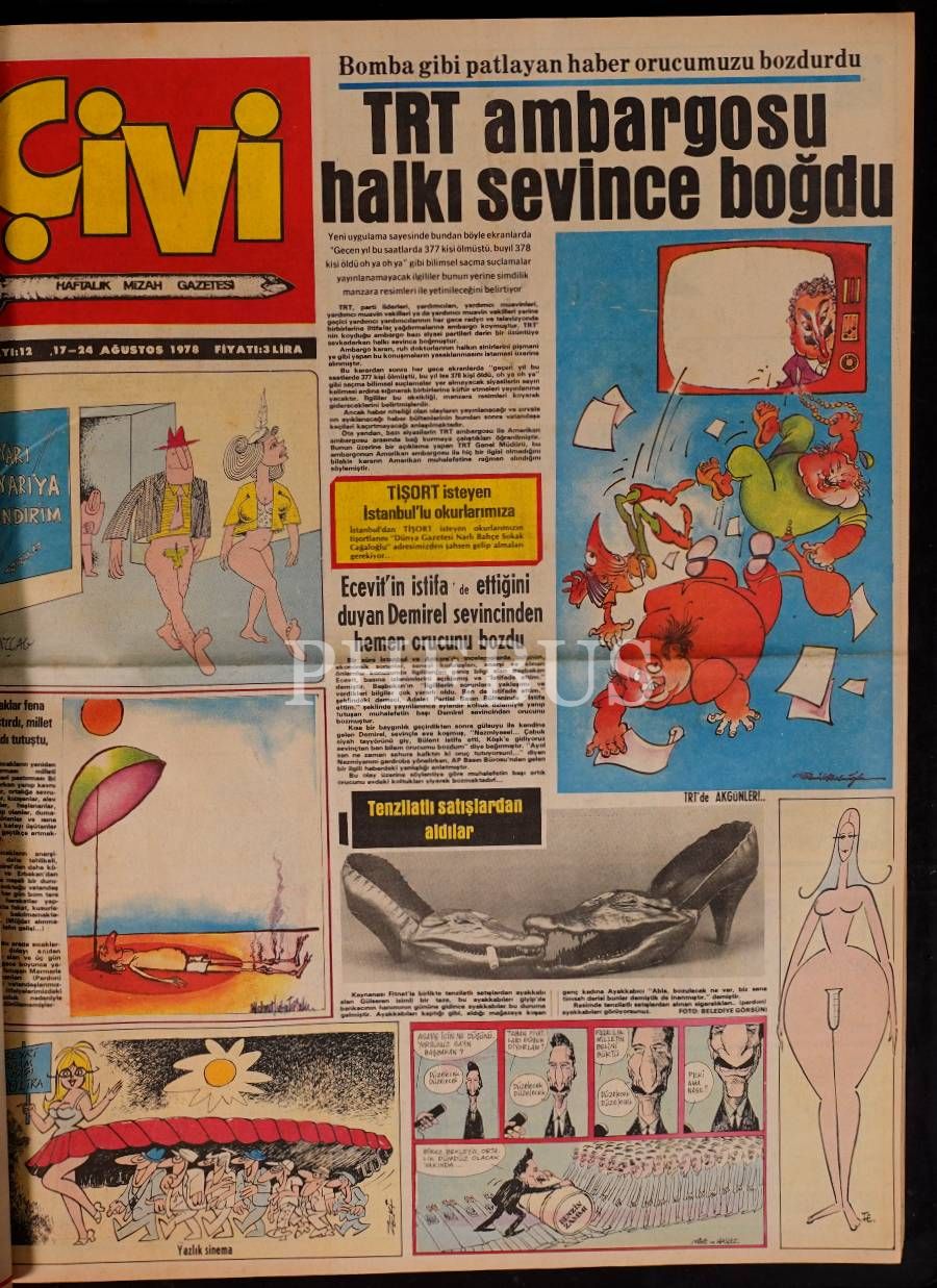 "Haftalık Mizah Gazetesi" ve "Haftalık Mizah Dergisi" olarak yayın faaliyetini sürdüren ÇİVİ´nin, 1978 ilâ 1980 yılları arasında yayınlanan sayılarını ihtiva eden 3 cilt, 42x55 cm (gazete) & 29x42 cm (dergiler)...