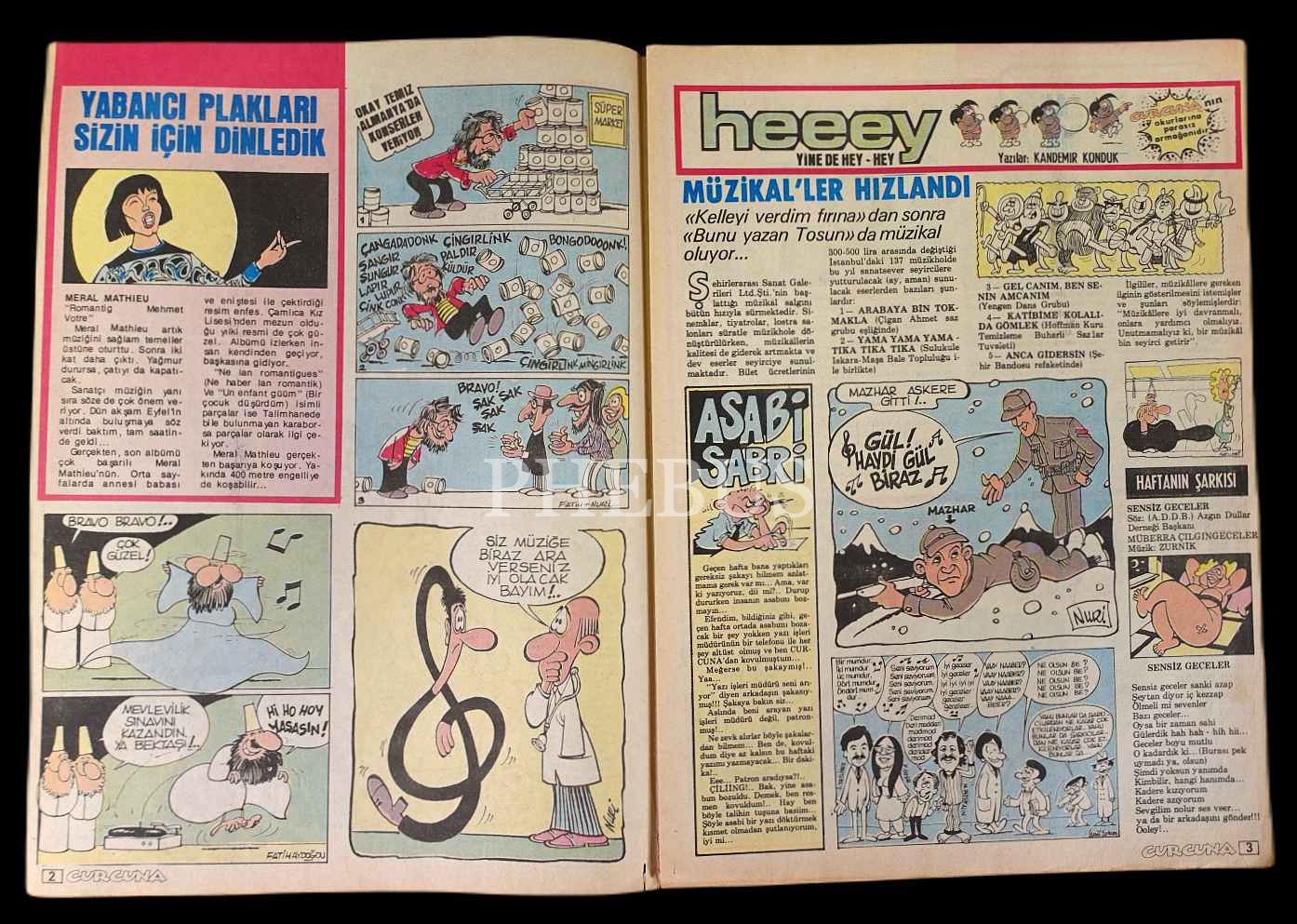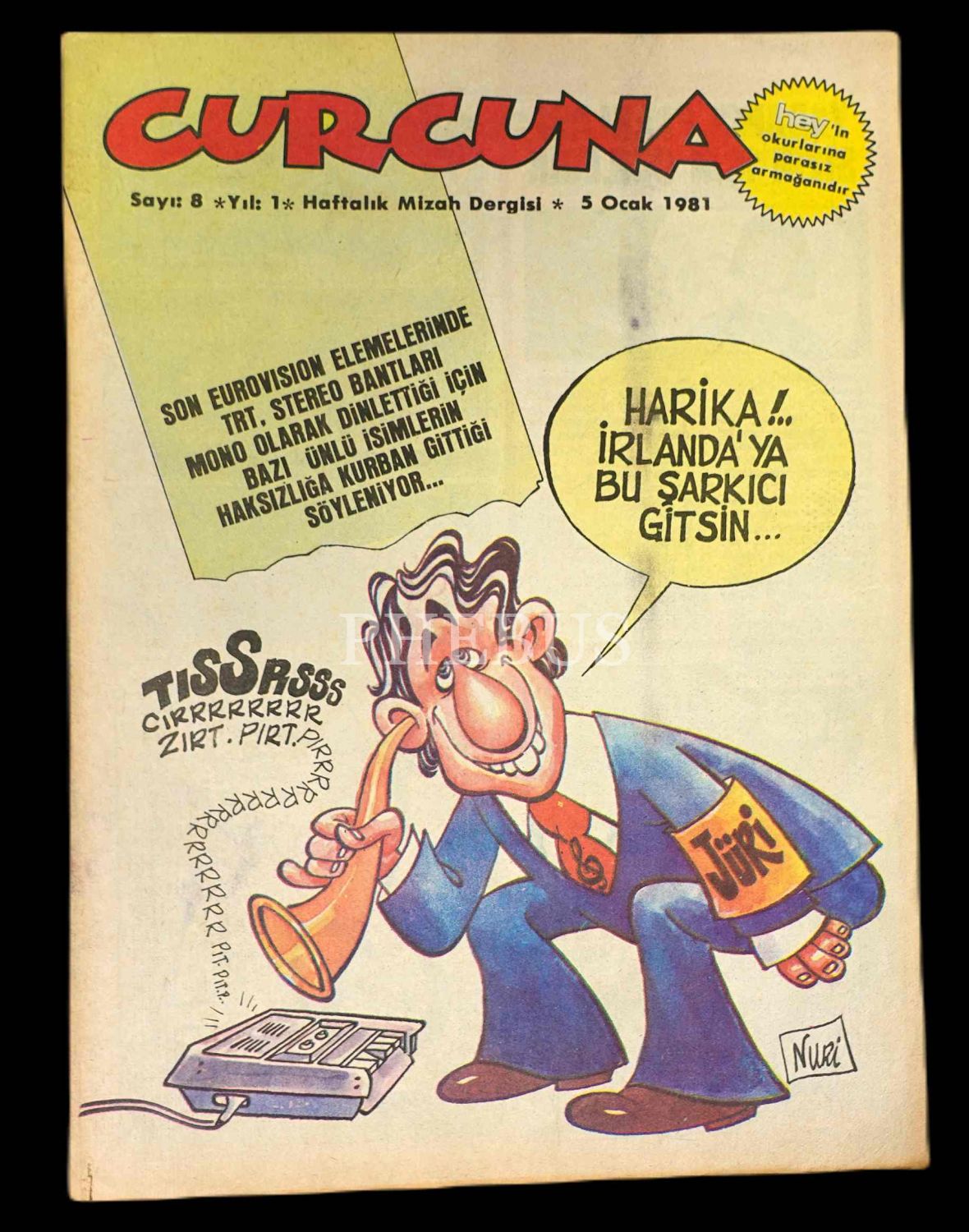 HEY ilavesi olarak çıkan "Haftalık Mizah Dergisi" CURCUNA´nın 17 Kasım 1980 ilâ 19 Ocak 1981 tarihleri arasında yayınlanan ilk 10 sayısı, 20x27 cm...