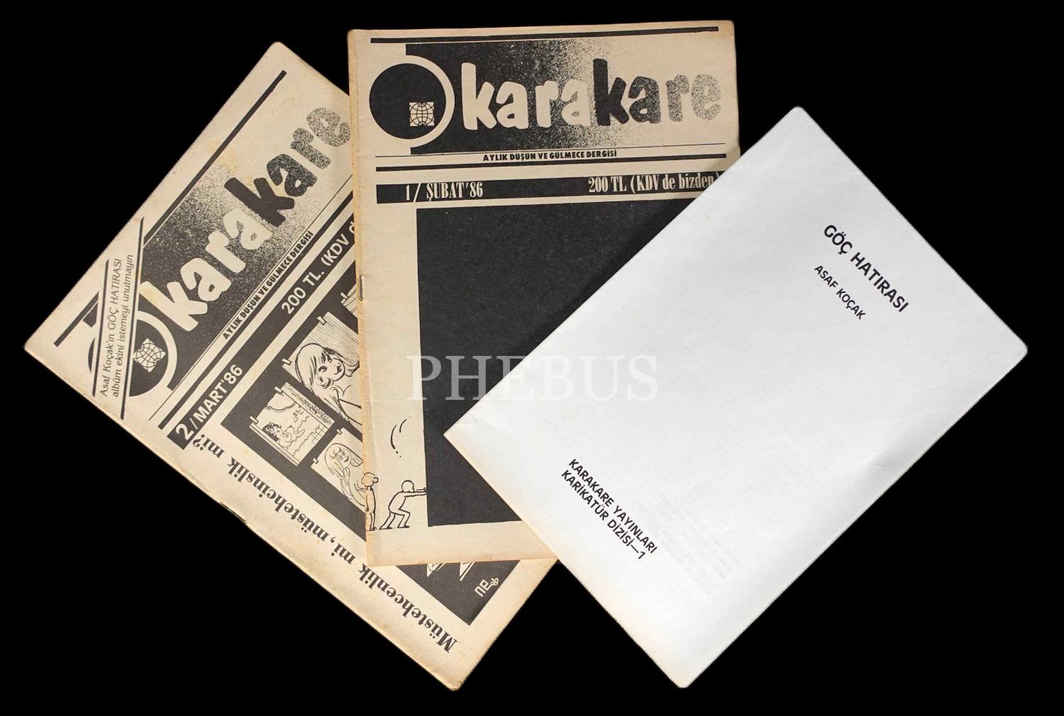 "Aylık Düşün ve Gülmece Dergisi" KARAKARE´nin Şubat/Mart 1986 tarihli 1. ve 2. sayısı, 20x28 cm...