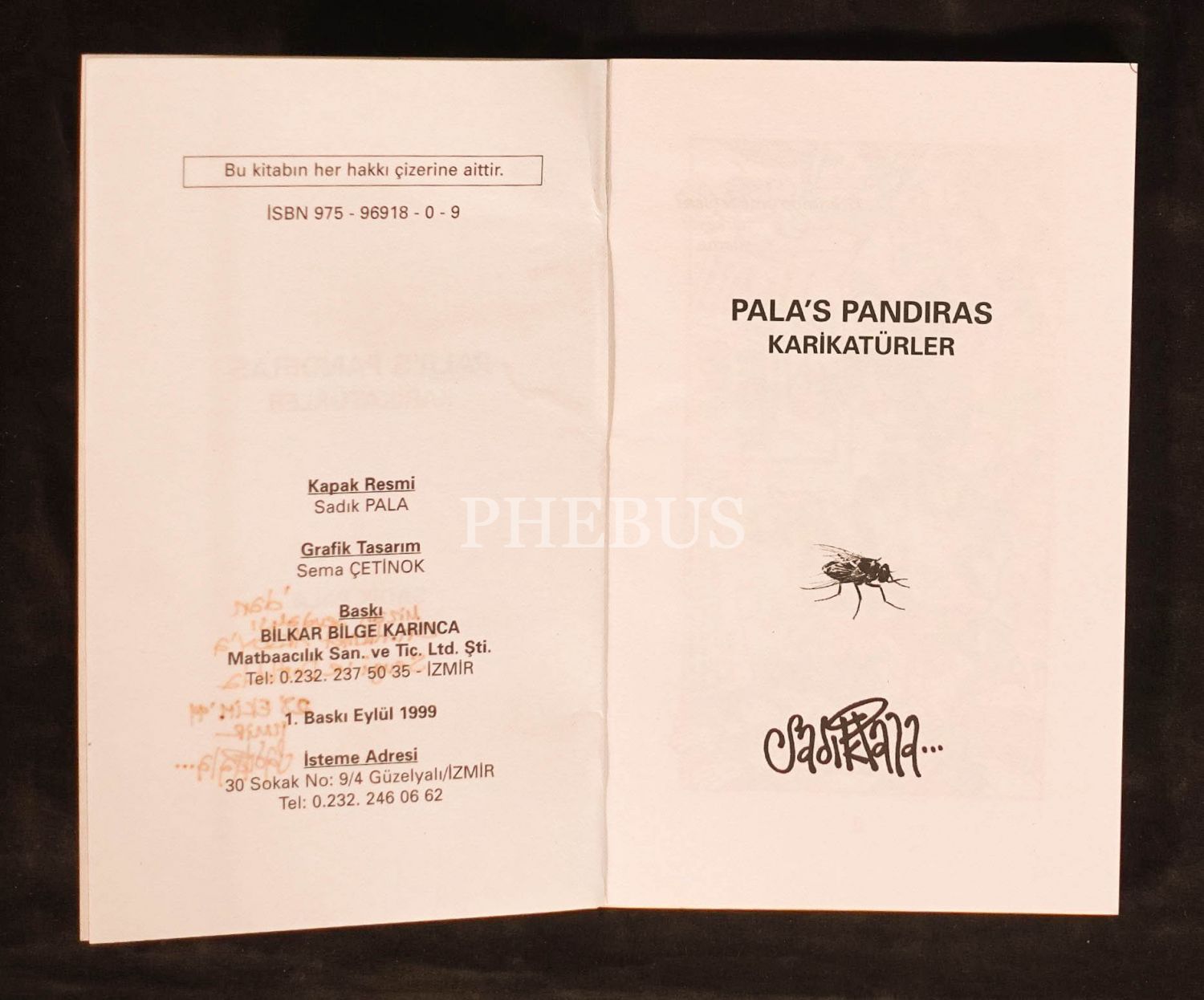 PALA´S PANDIRAS KARİKATÜRLER, Sadık Pala, Eylül 1999, Bilkar Bilge Karınca Matbaacılık, 80 sayfa, 11x18 cm, İTHAFLI VE İMZALI...