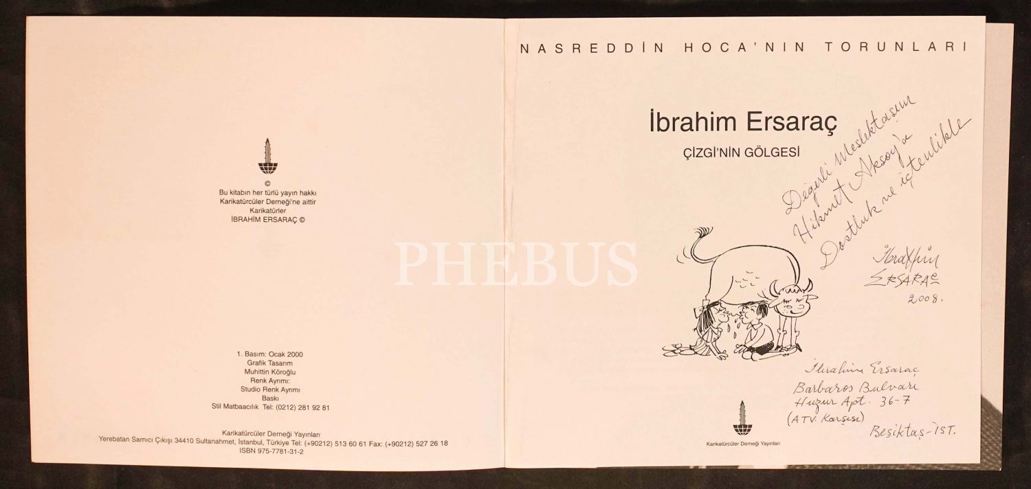 Nadreddin Hoca´nın Torunları: İBRAHİM ERSARAÇ (Çizginin Gölgesi), Ocak 2000, Karikatürcüler Derneği Yayınları, 71 sayfa, 19x18 cm, İTHAFLI VE İMZALI...