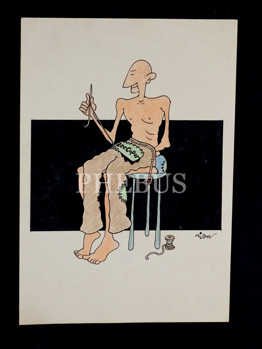 Nizam[ettin Mollasalihoğlu] ıslak imzalı, yoksulluk konulu karikatür, 18x25 cm...