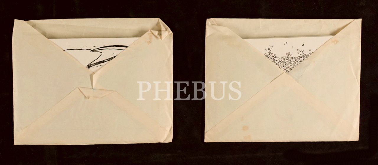 Kendi adlarının yazılı olduğu zarflar içerisinde Ahmet Ot ve Mehmet Ot kardeşlere ait çizim kartları, Ahmet Ot´un 10, Mehmet Ot´un ise 11 adet çizimi yer almaktadır, 10x14 cm...