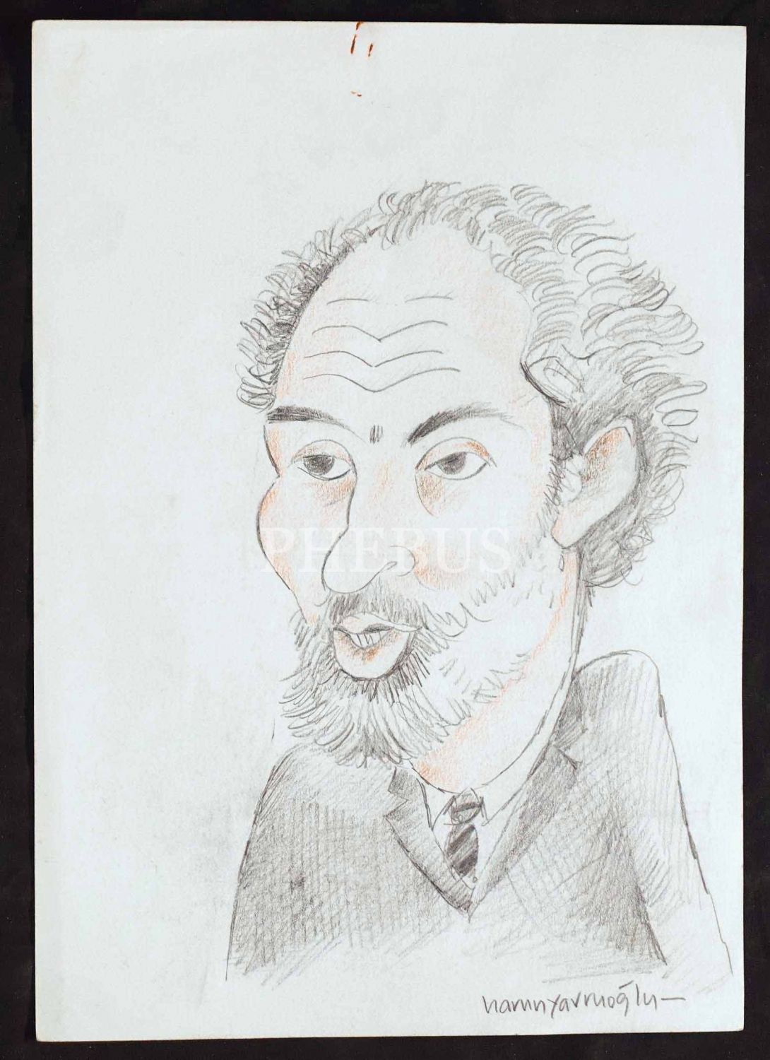 Harun Yavruoğlu ıslak imzalı Ebulfez Elçibey (2. Azerbaycan cumhurbaşkanı) çizimi, 21x30 cm...