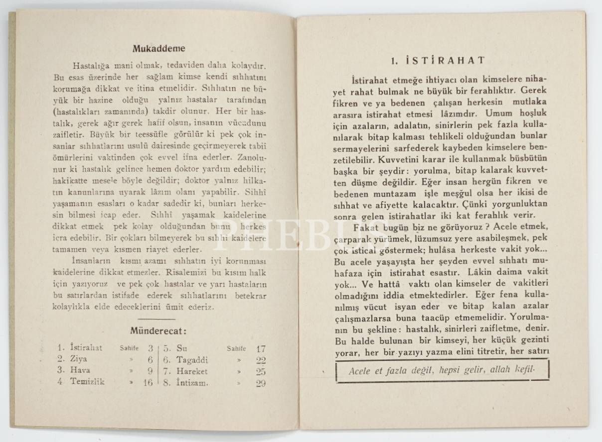 "Basit İlaçlar Vasıtasile EYİ [İyi] SIHHAT, Dr. med. E. Meyer, mütercimi: Hüseyin Fehmi, Şirketi Mürettibiye Matbaası, İstanbul (İkinci baskı), 32 sayfa, 14x20 cm...