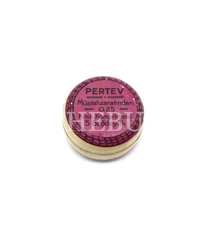 "PERTEV KİNİN KOMPRİMESİ" (Kırmızı) kutusu, boş, 2x1 cm...