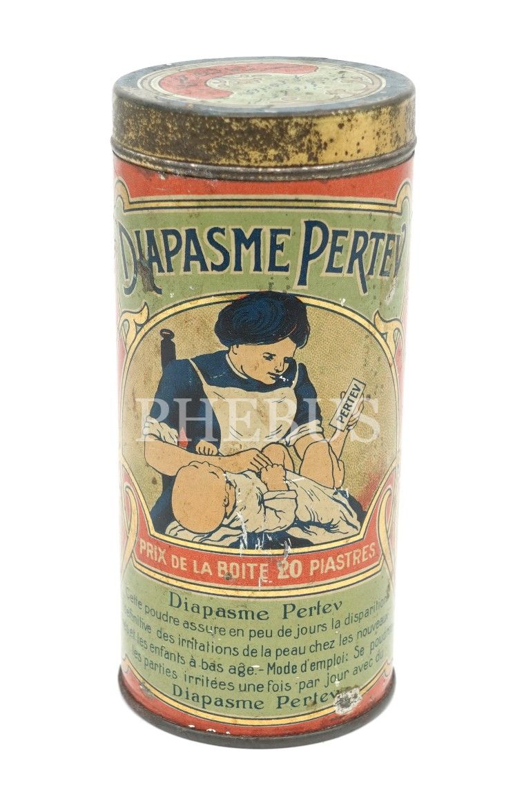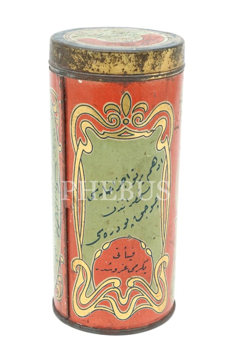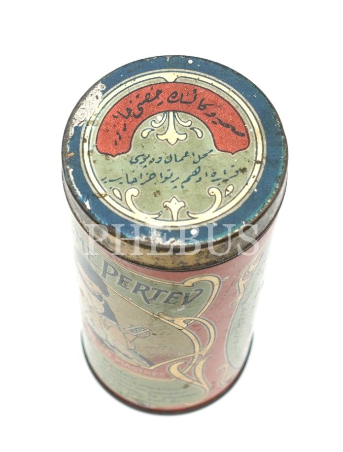 Osmanlıca-Fransızca "PERTEV" pudra kutusu (metal), 10x4 cm...