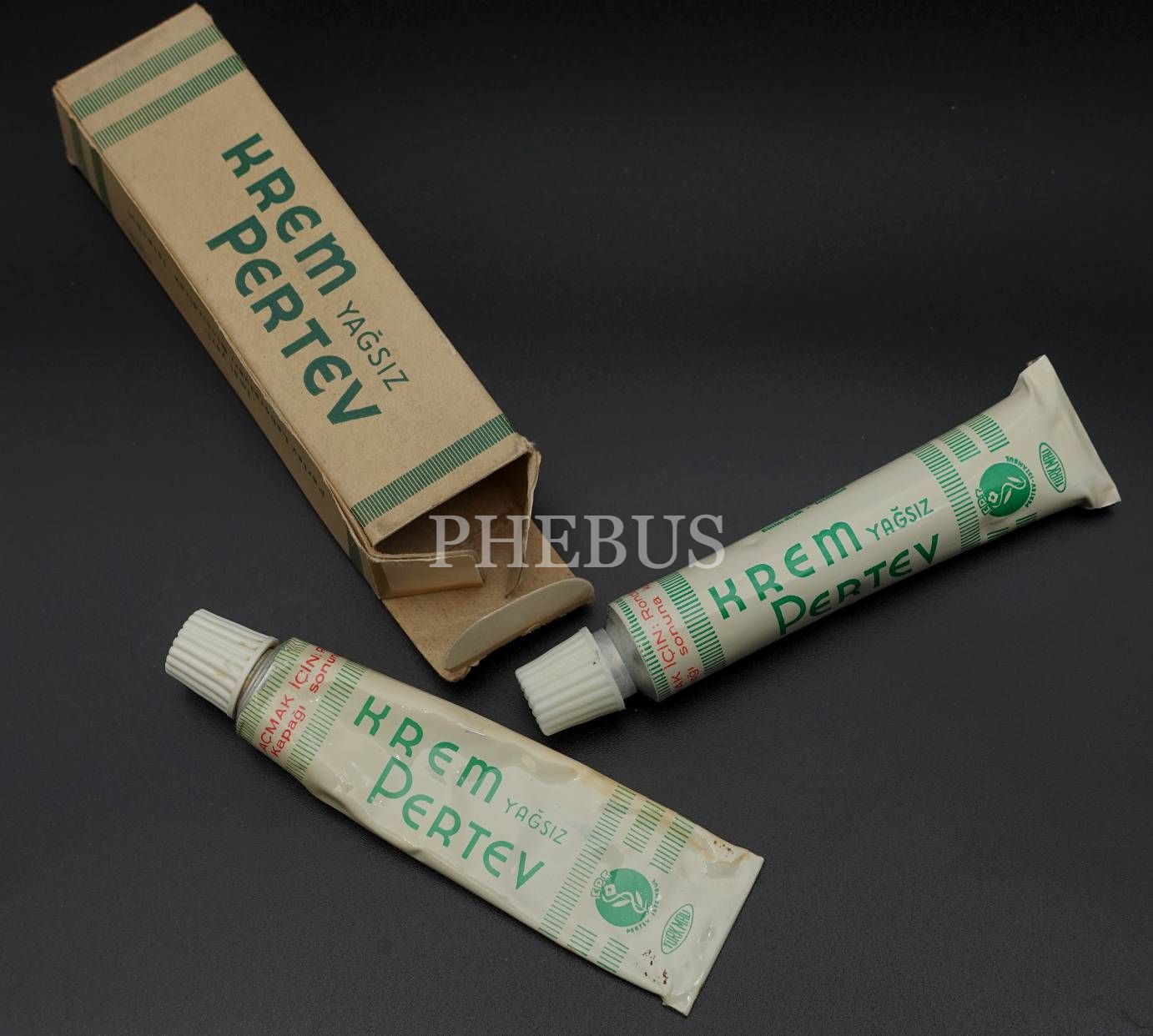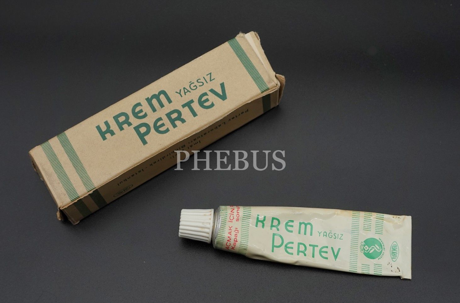 Biri orijinal kutusunda iki adet "KREM PERTEV (Yağsız)" tüpü, 11x3x2 cm...