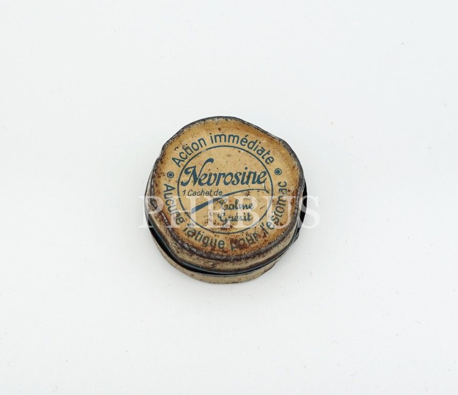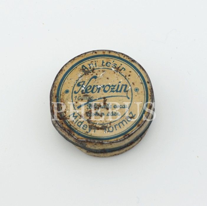 Türkçe-Fransızca "NEVROZİN (Nevrozin Laboratuvarı - Ecz. Celal Ergun)" kutusu, boş, 3x1 cm...