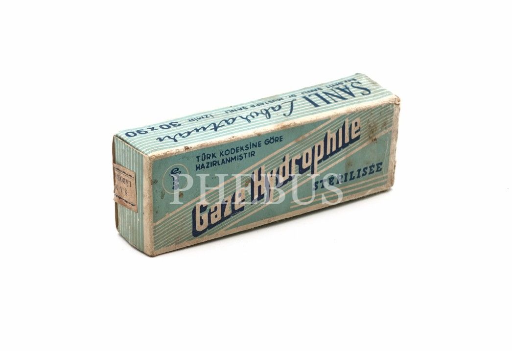 Kataprin reklamı bulunan orijinal kutusunda Şanlı Laboratuarı üretimi "GAZE HYDROPHILE - STERILISEE (Gaz İdrofil)", 10x4x2 cm...