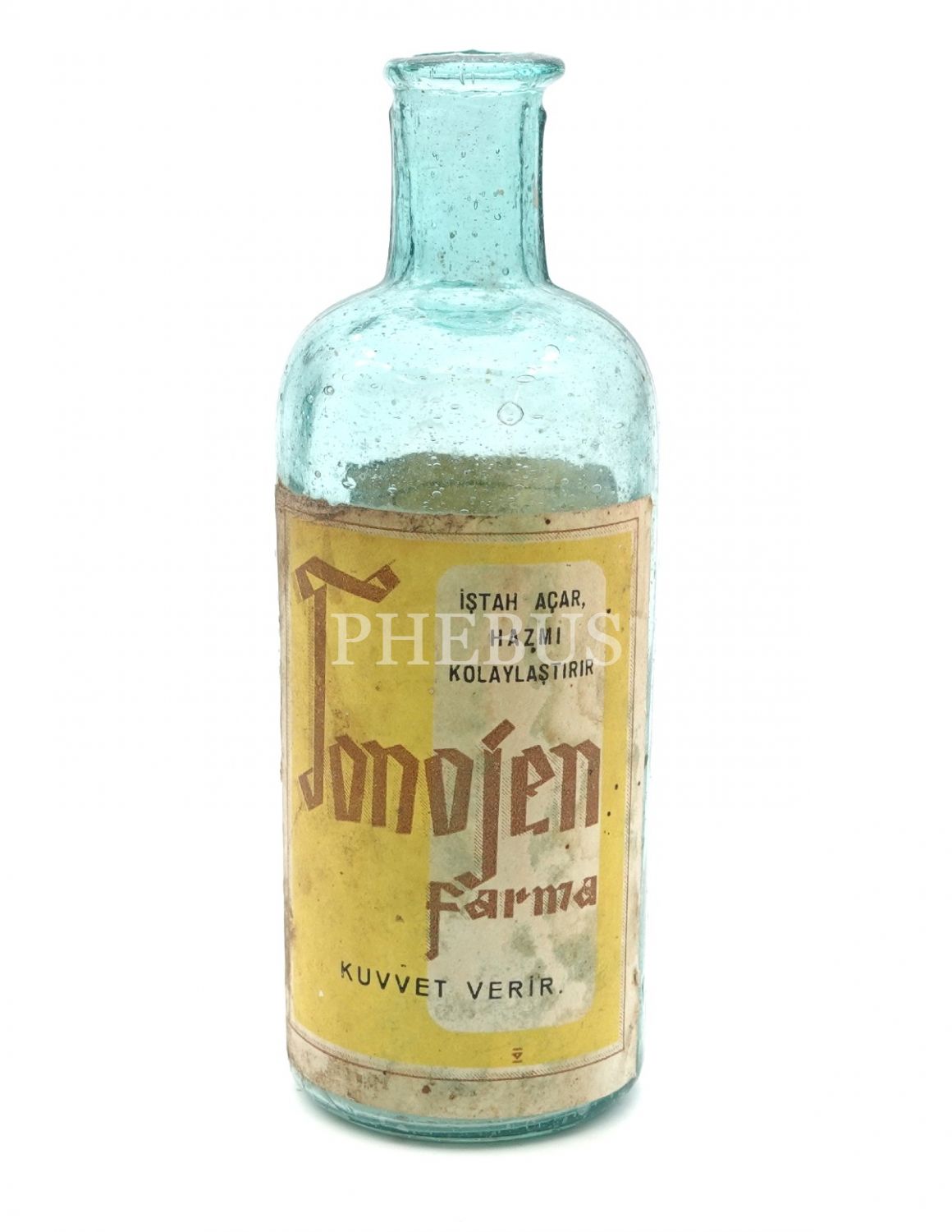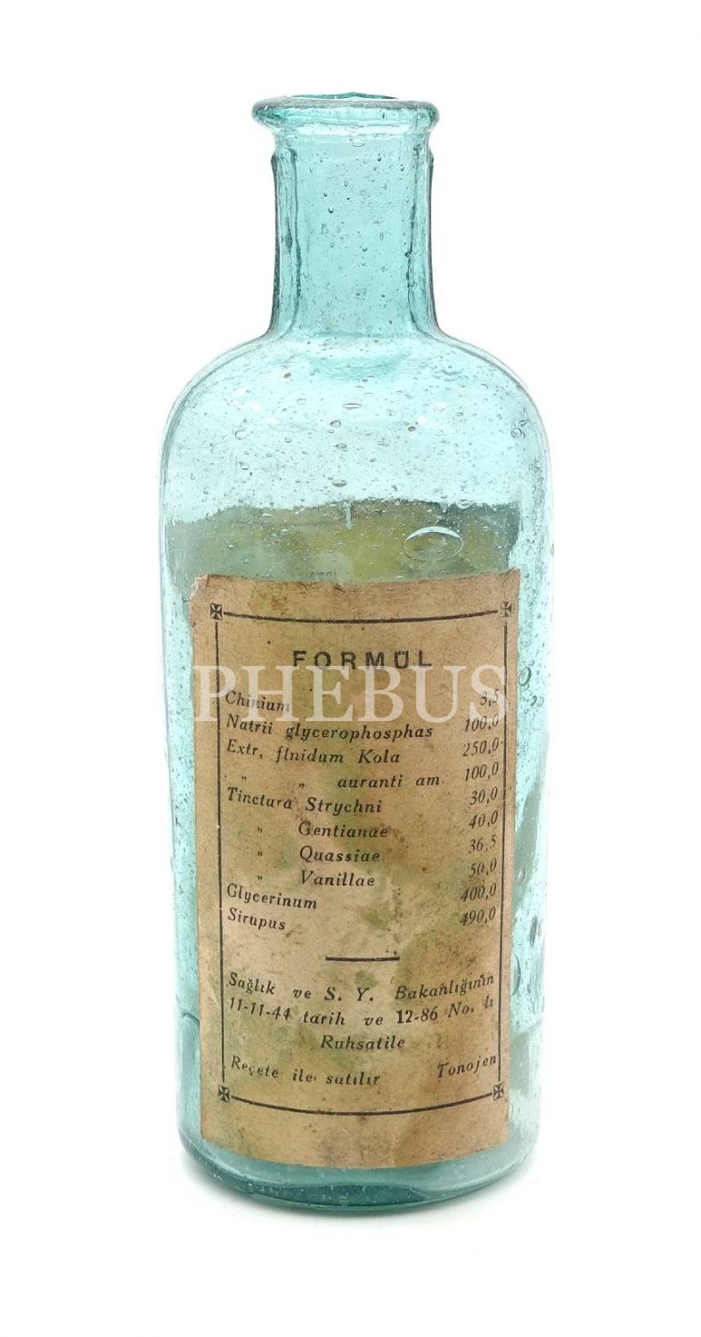 TONOJEN FARMA şişesi (boş), 1944 ruhsatlı, 14x5 cm...