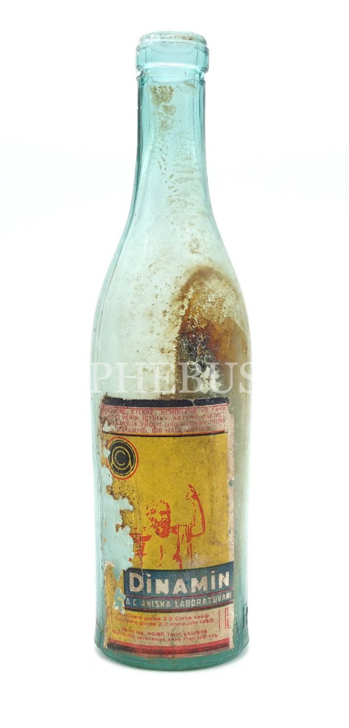 DİNAMİN şişesi (boş), A.C. Akıska Laboratuvarı, 22x6 cm...